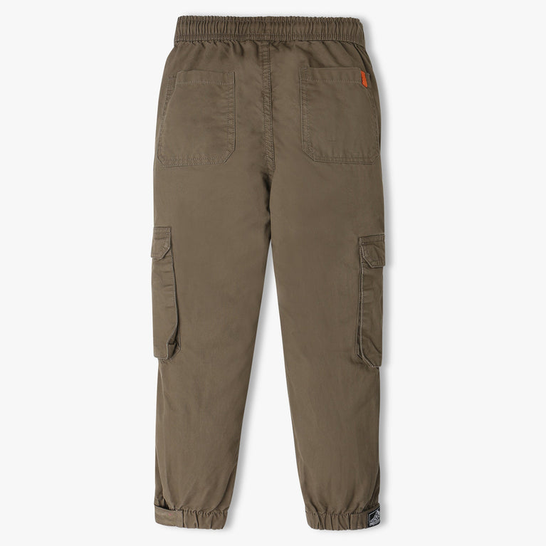 These solid pattern regular fit cargos has mid rise waist. Made from cotton, your kid's feel comfortable wearing the product.