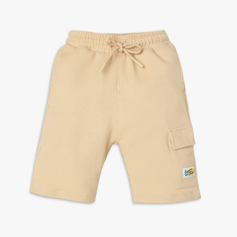 These fellow sets theme, solid pattern regular fit shorts has mid rise waist. Made from cotton polyester spandex, your kid's feel comfortable wearing the product.