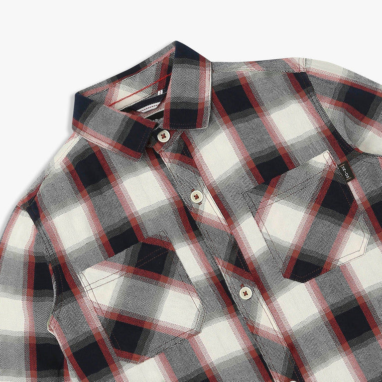 Introducing our Cotton Checkered Shirt designed for boys, perfect for adding a stylish touch to any wardrobe. Crafted from soft, woven cotton, this full-length shirt offers both comfort and a classic look.
