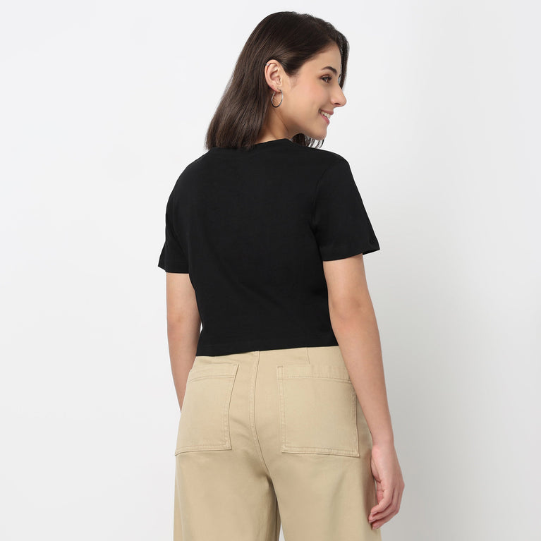 Style this T-shirt with statement accessories for a polished ensemble or keep it simple for a relaxed vibe.