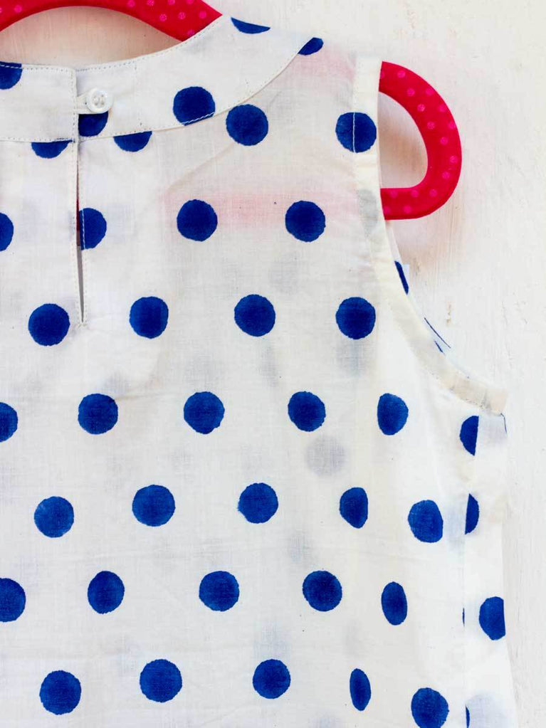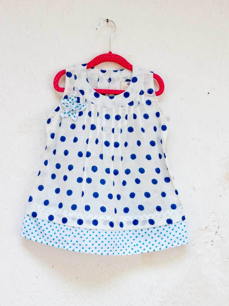 Indigo Polka PinTuck Block Printed Cotton Frock