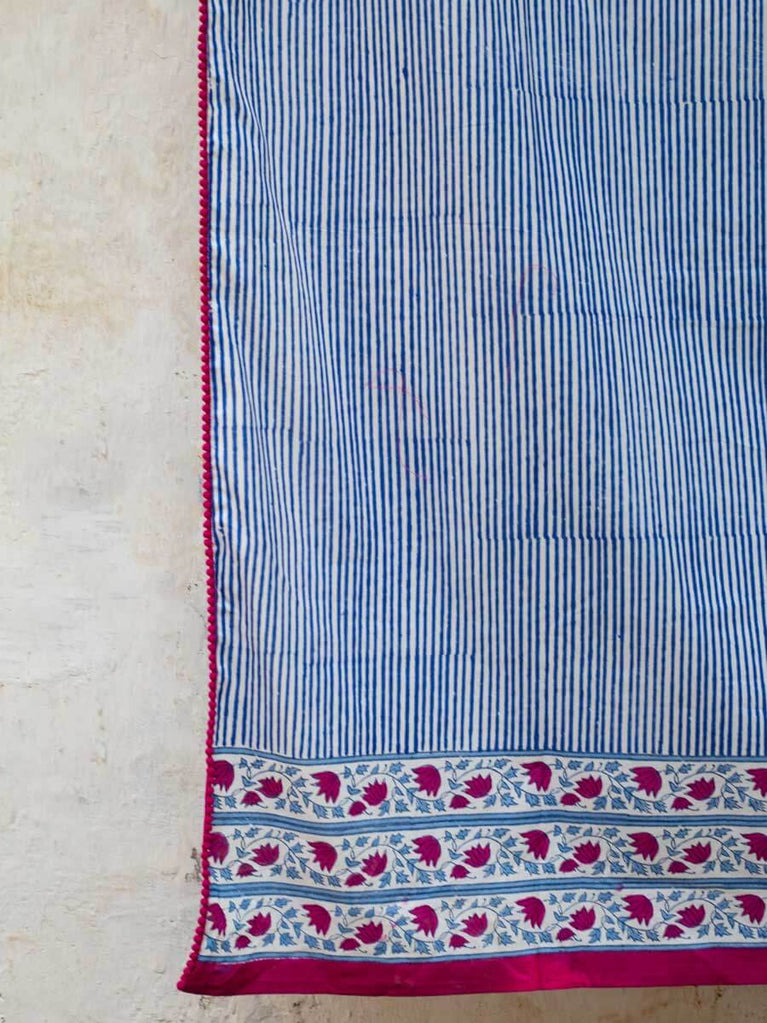 Indigo Stripes Block Printed Cotton Curtain