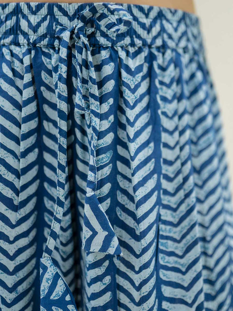 Indigo Waves Daabu Cotton Palazzo Pants