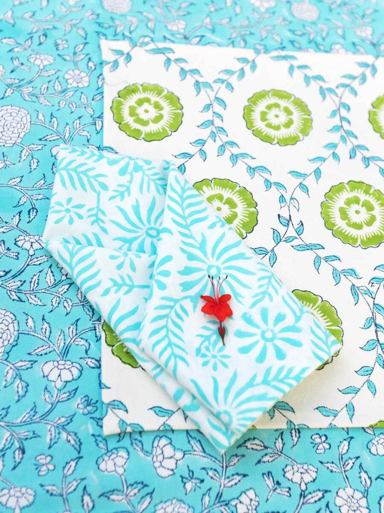 Iris Block Printed Cotton Table Napkins