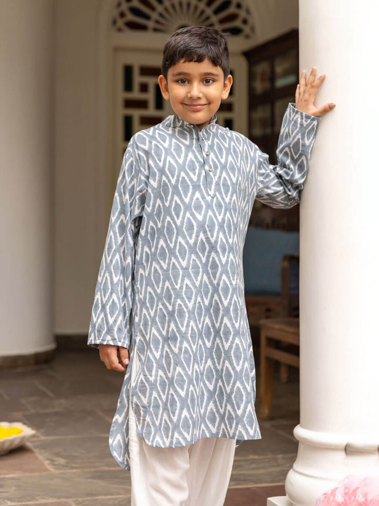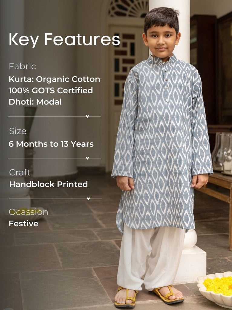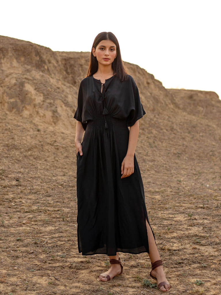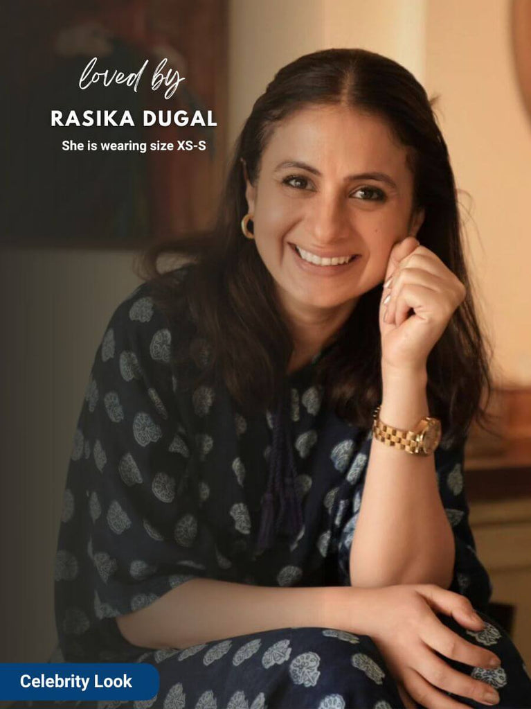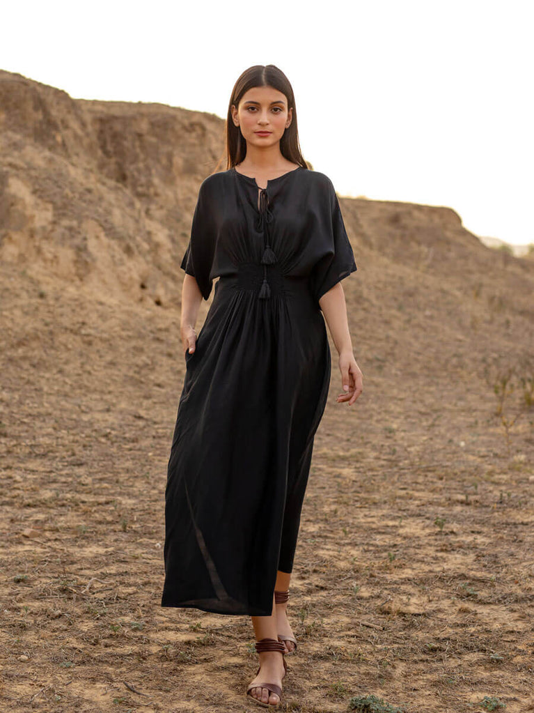 Jheel Indigo Printed Modal Kaftan Maxi Dress