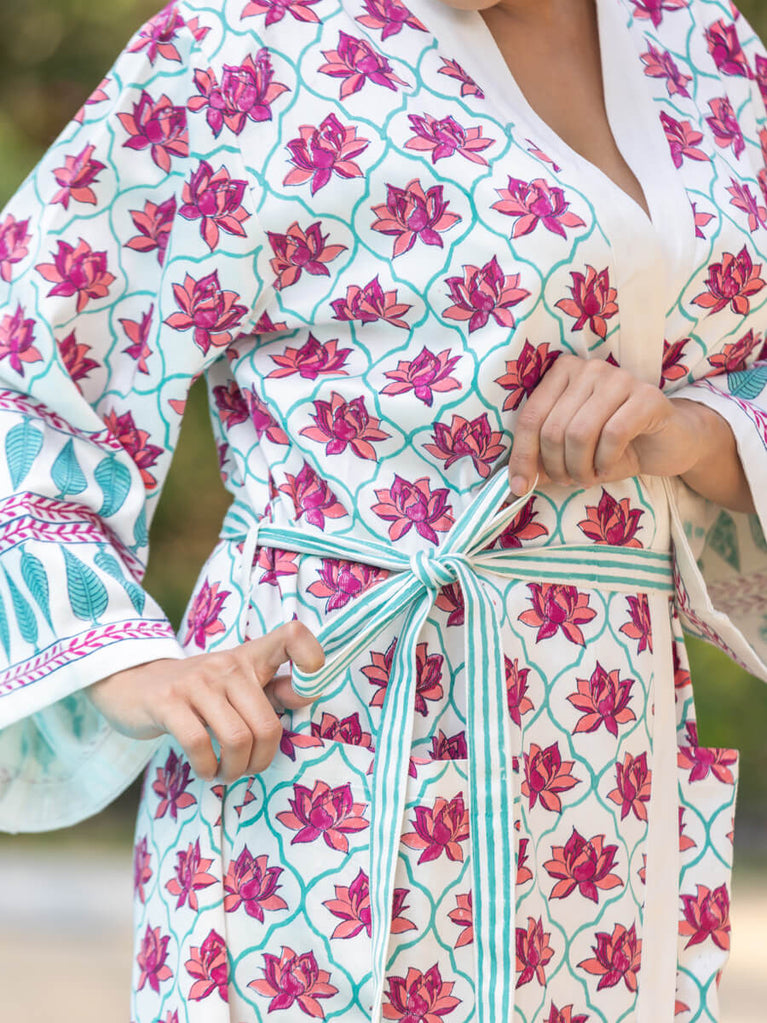 Lighthouse Magic Block Printed Waffle Cotton Bath Robe