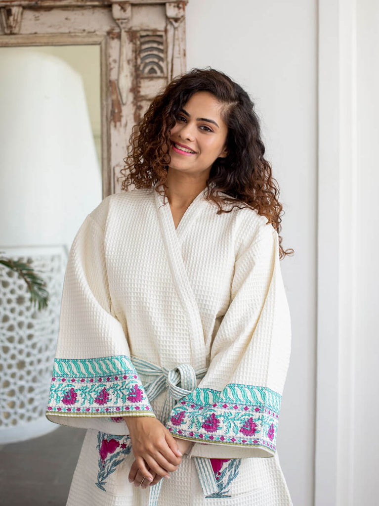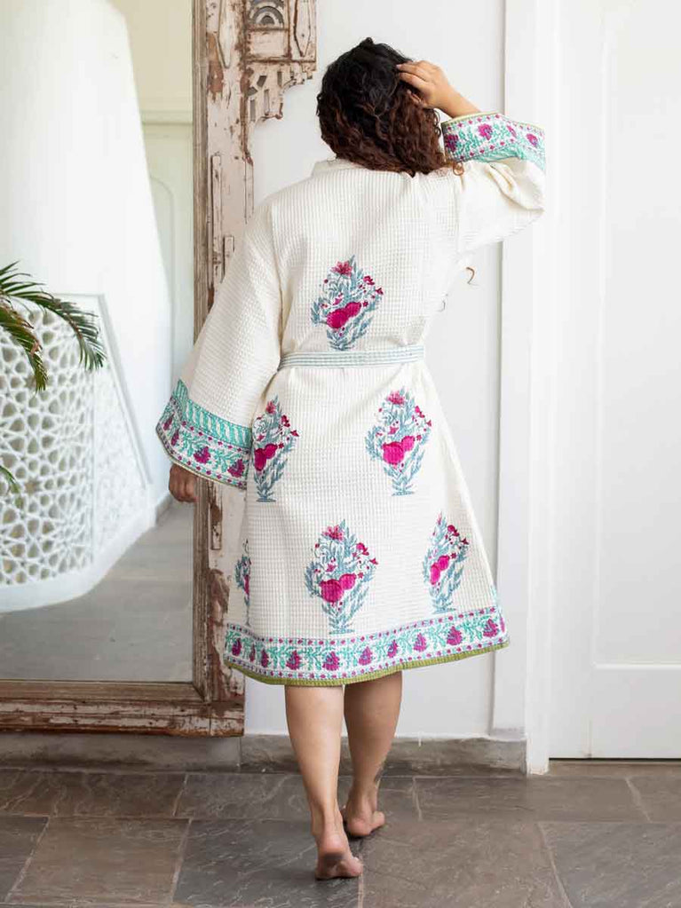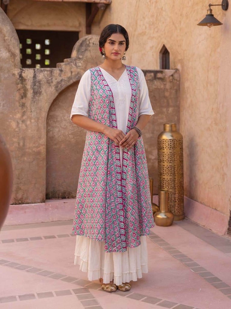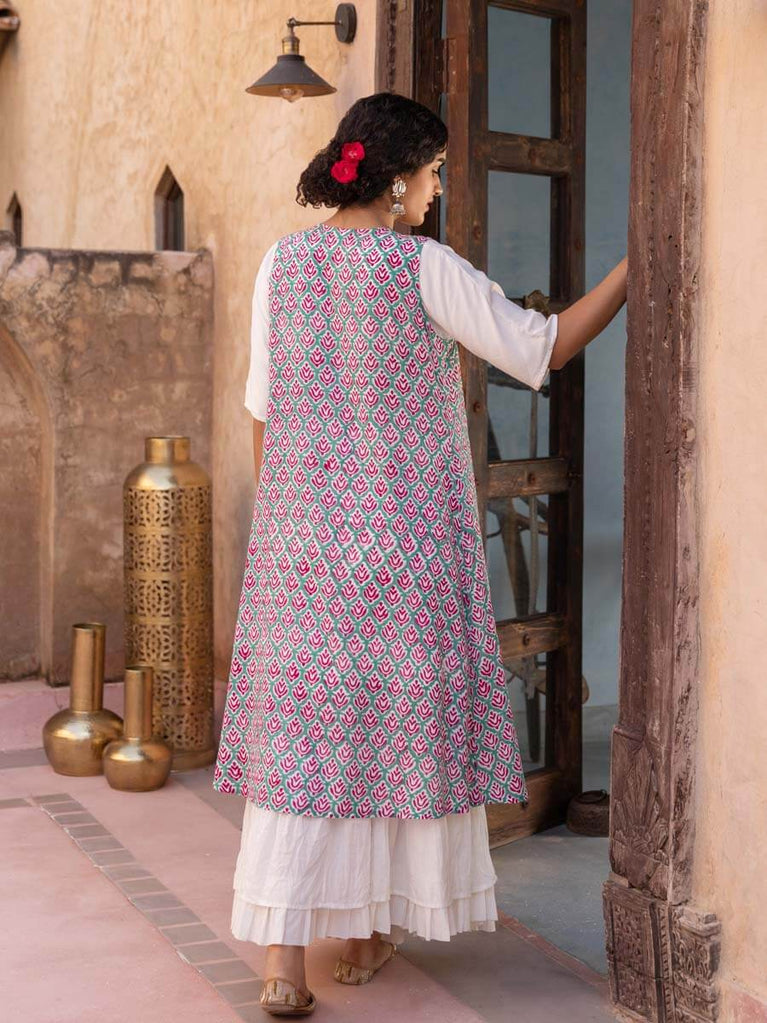 Pink Blossom Organic Cotton Block Printed Angrakha Set