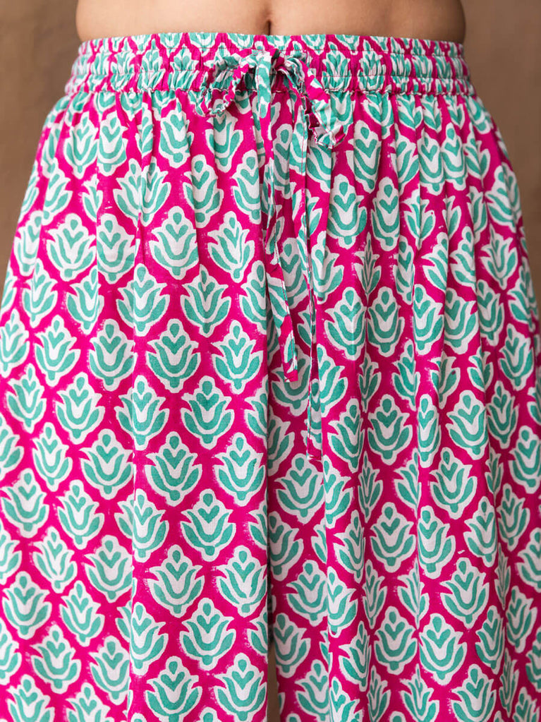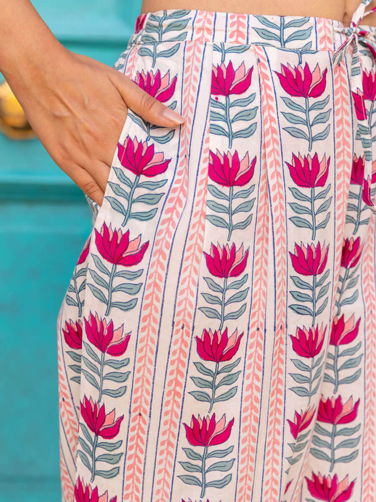 Pink Floral Paradise Hand Block Printed Palazzo Pants