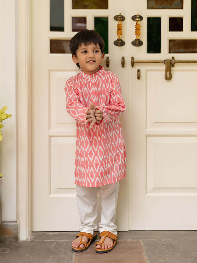 Pink Ikat Organic Cotton Block Printed Long Kurta