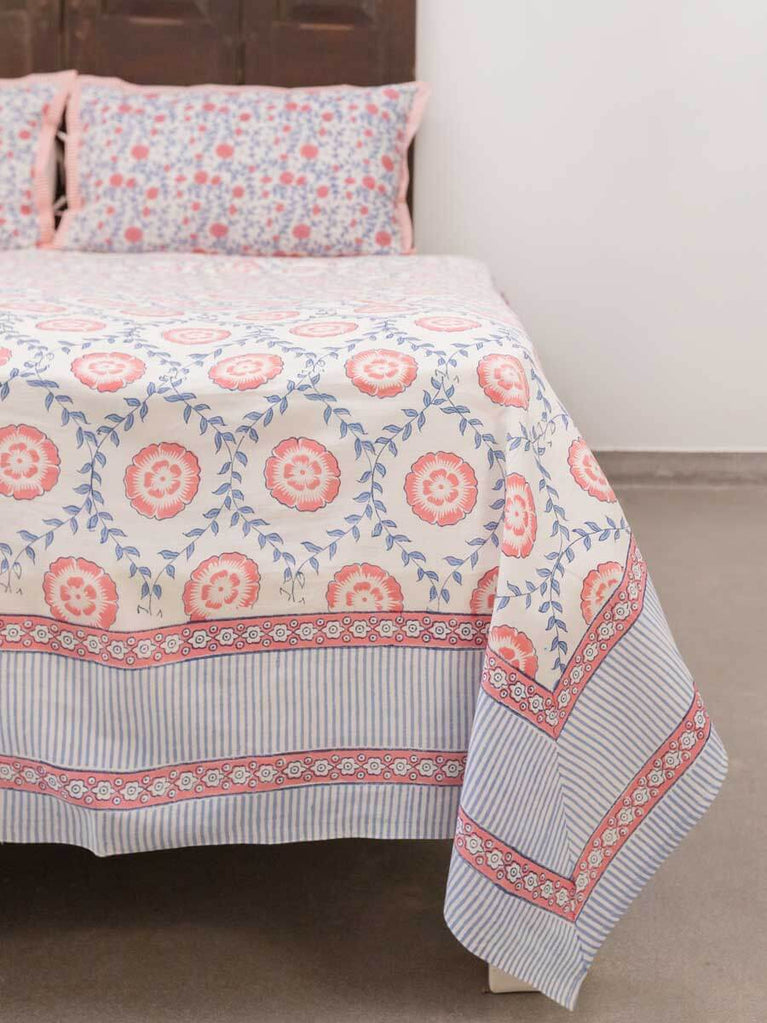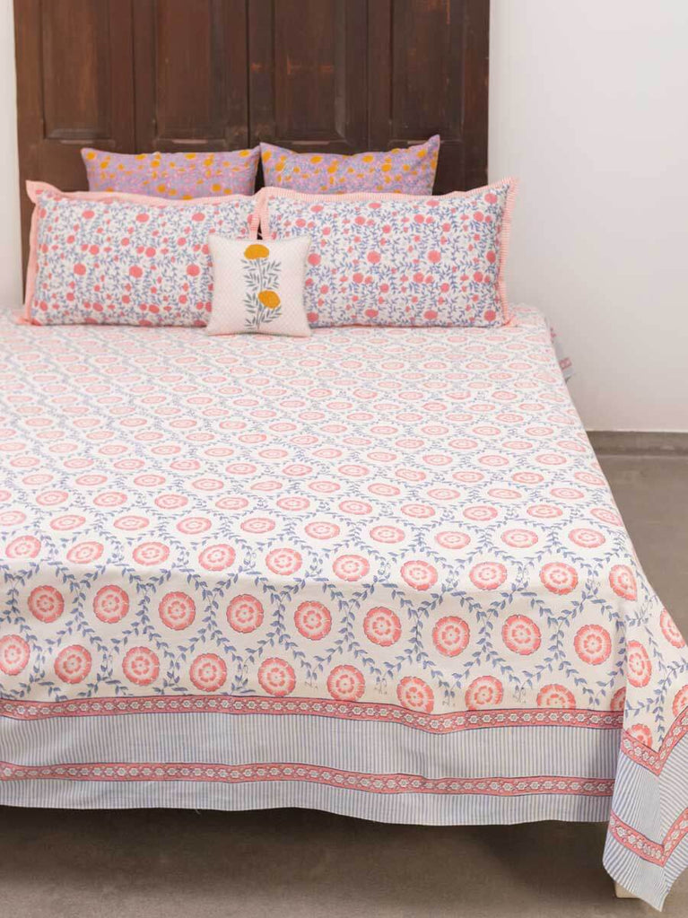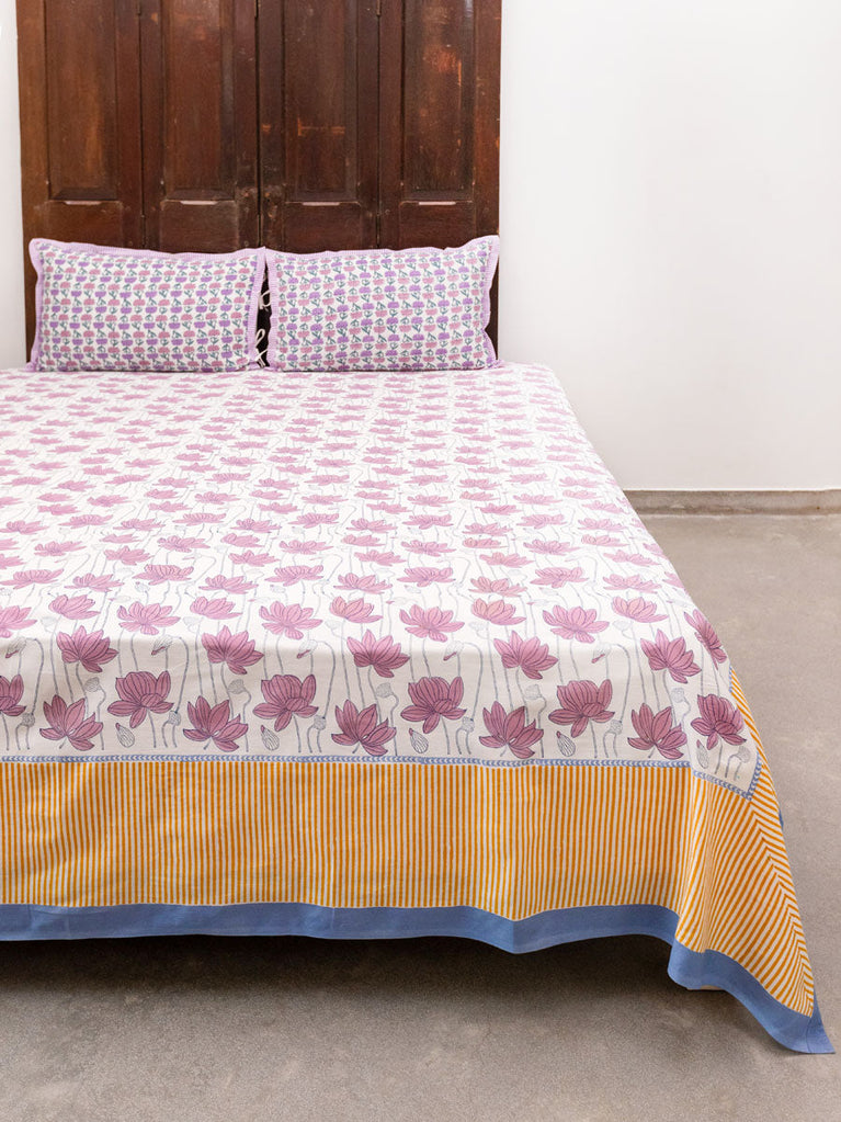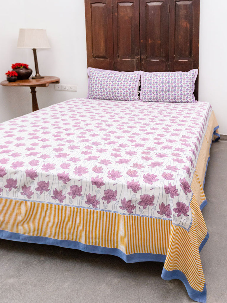 Purple Lotus Hand Block Printed Cotton Bed Sheet