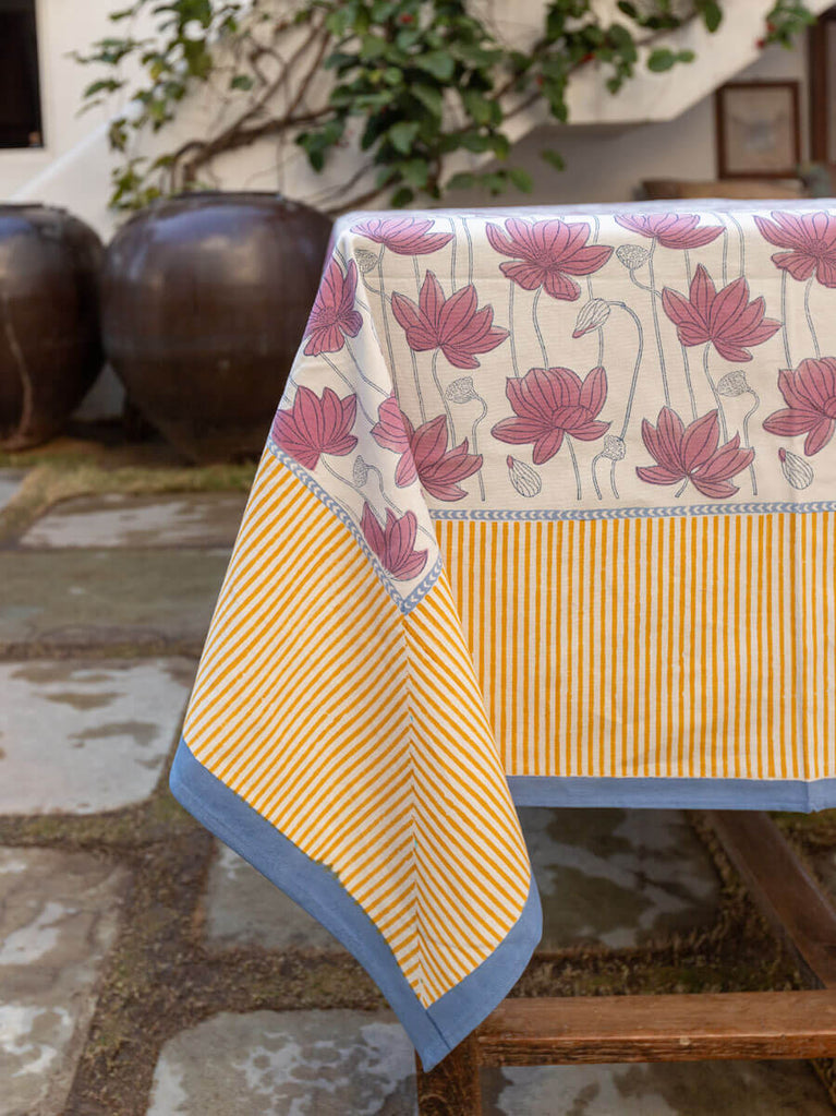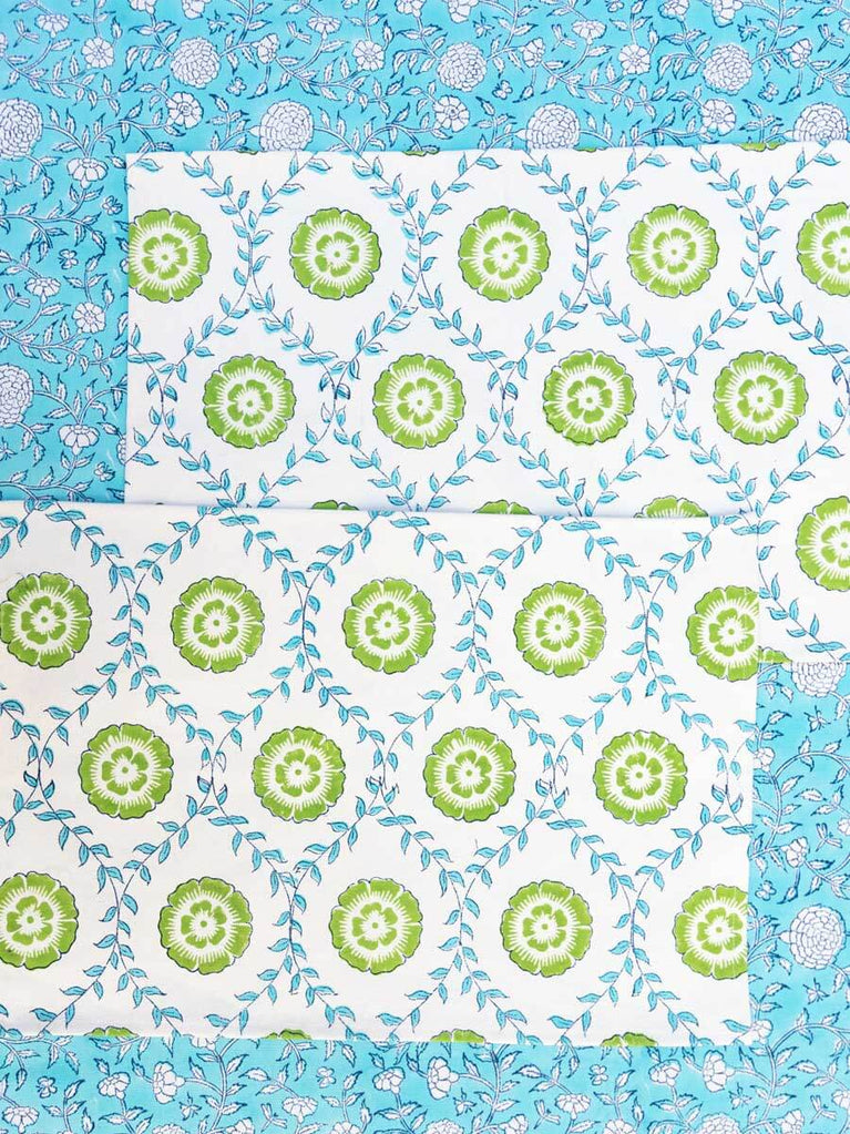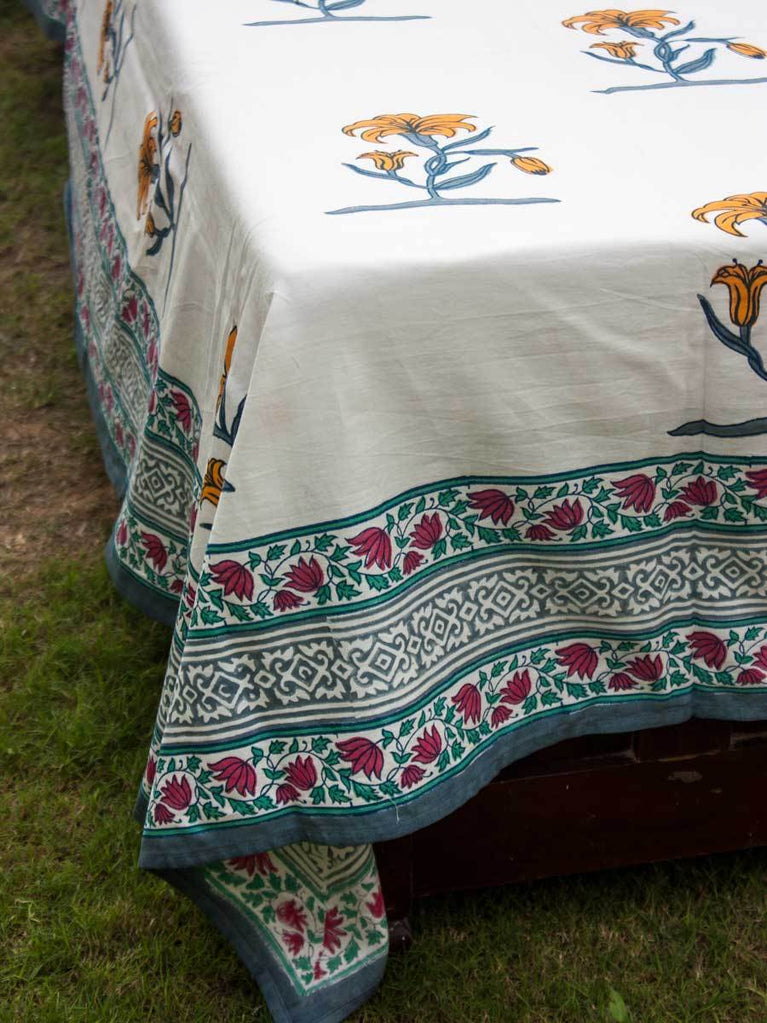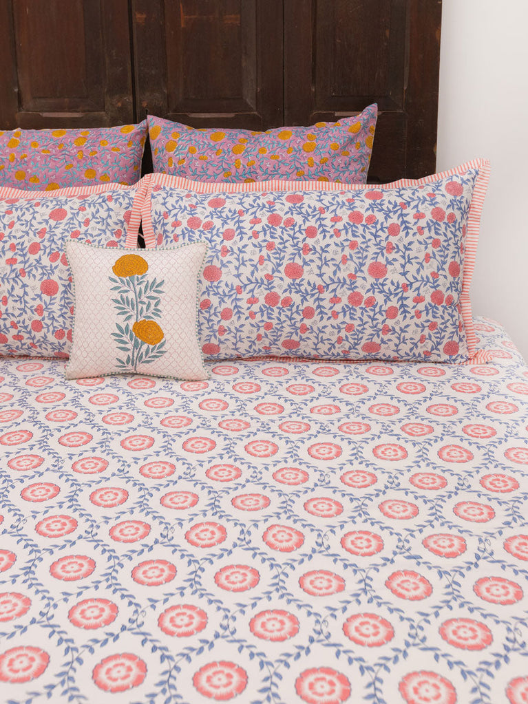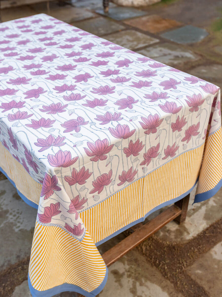Purple Lotus Hand Block Printed Cotton Bed Sheet