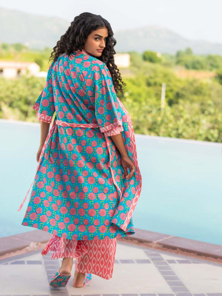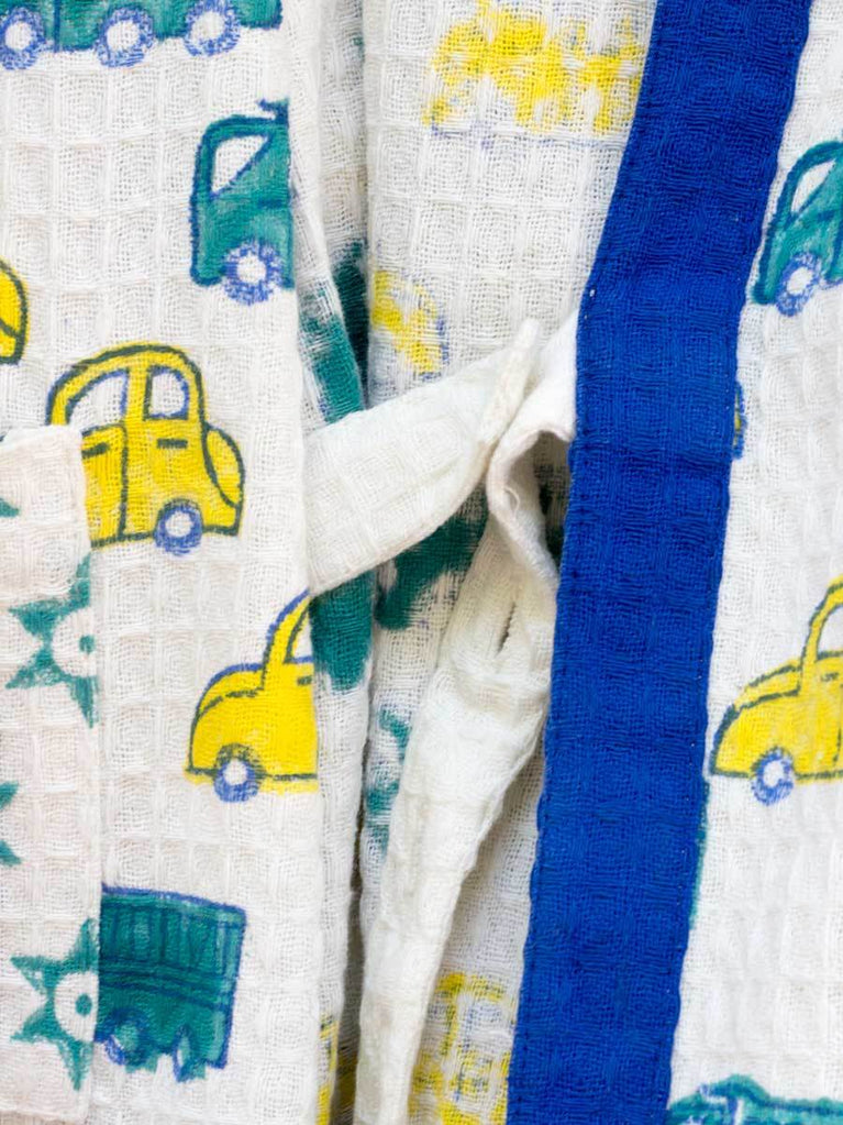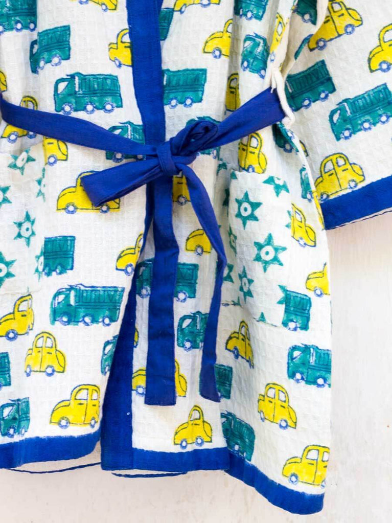 Power Wheels Block Printed Waffle Cotton Bath Robe