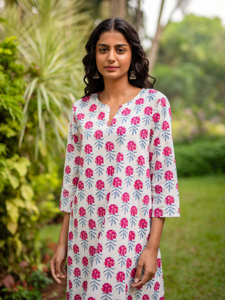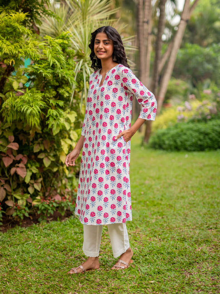 Royal Lotus Block Printed Cotton Kurta
