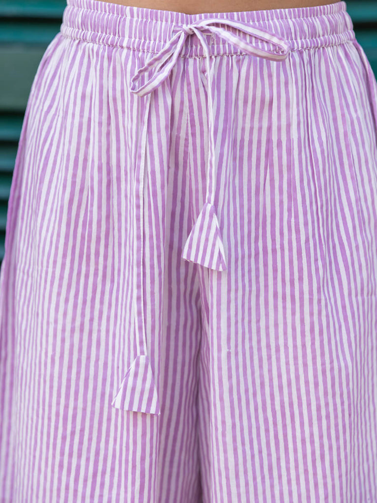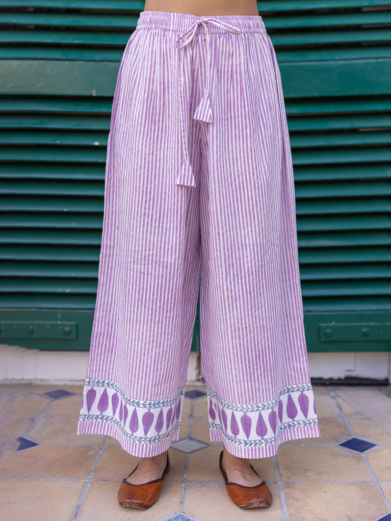 Purple Stripes Hand Block Printed Palazzo