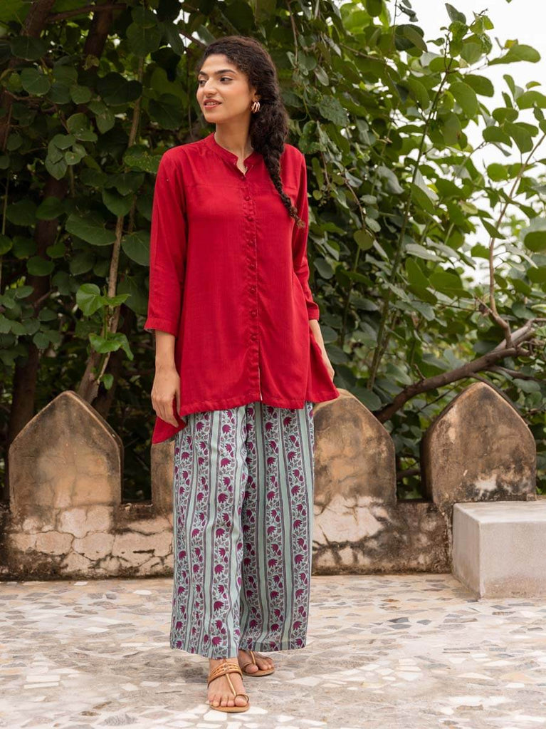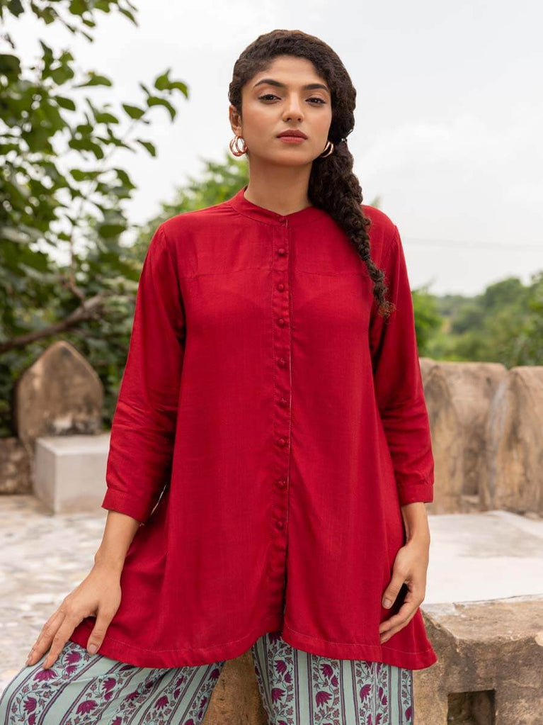 Red Viscose Slub Shirt