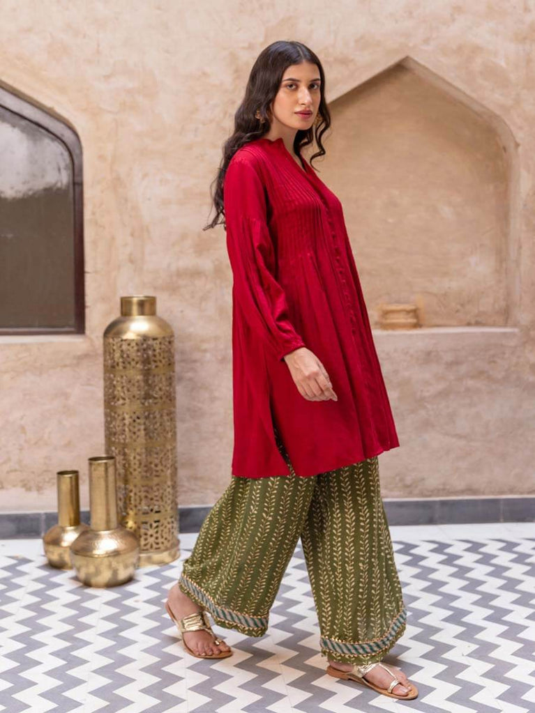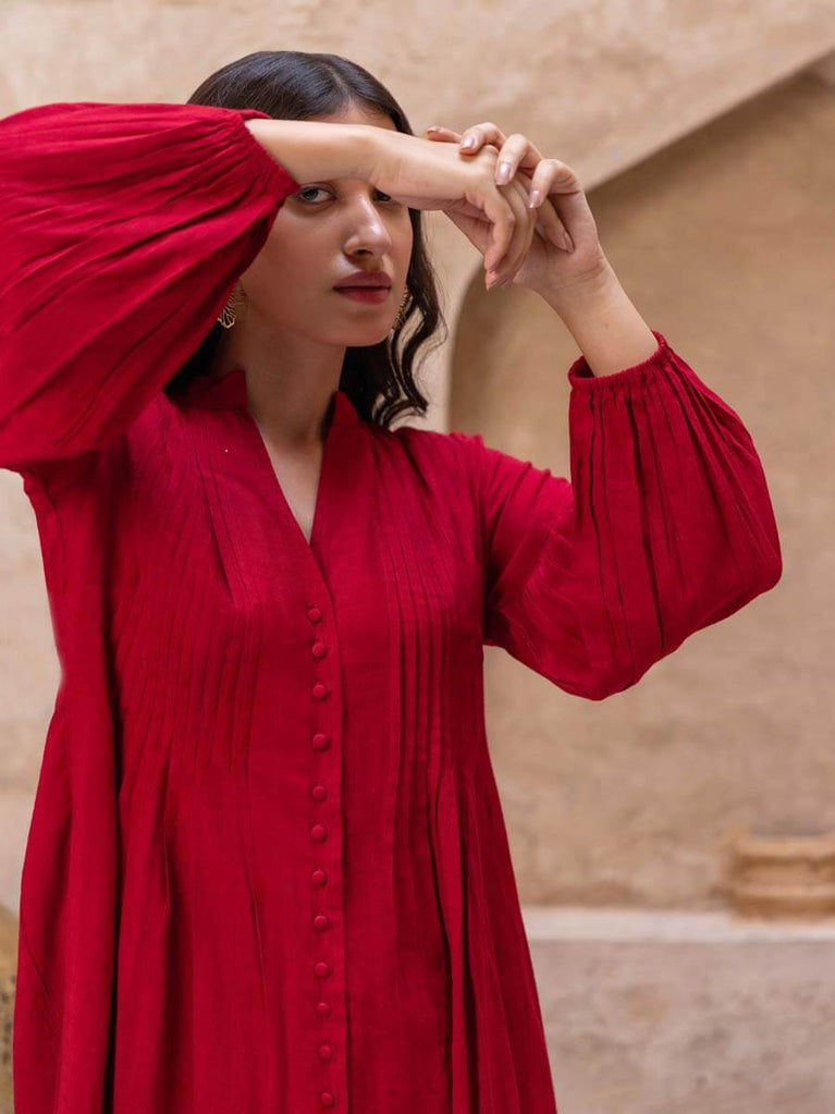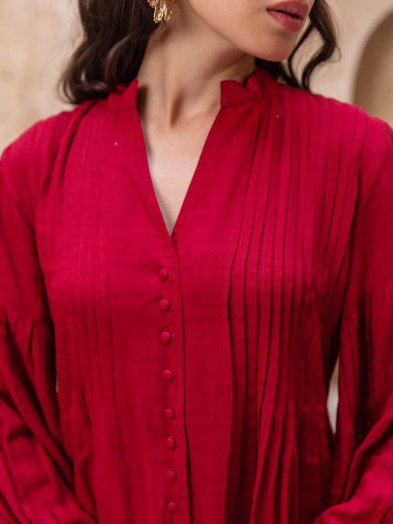 Red Pintuck Kurta
