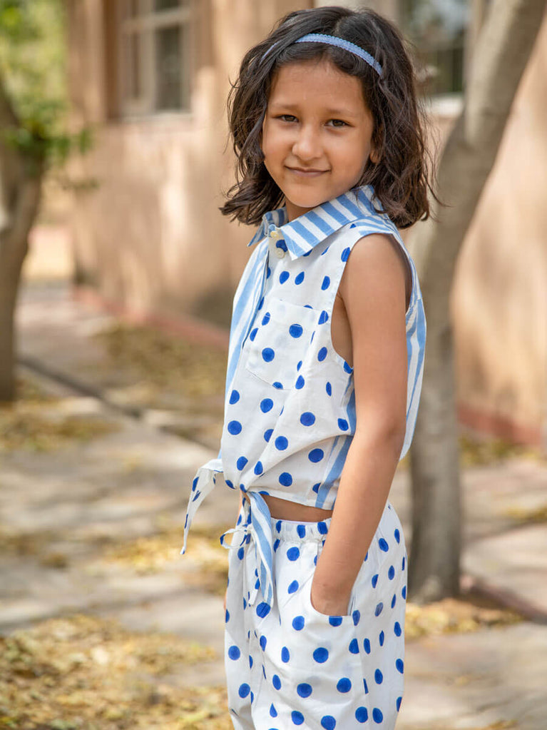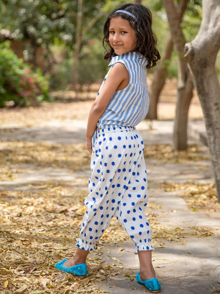 Set of 2 - Polka Dots Organic Cotton Block Printed Top & Pants Set
