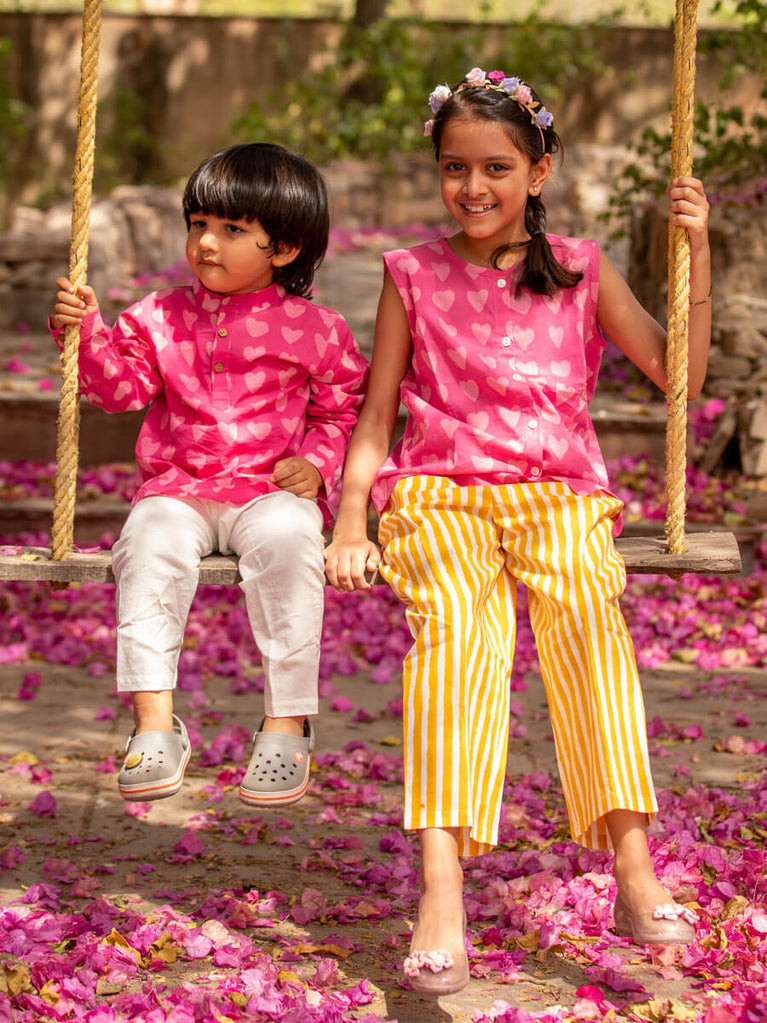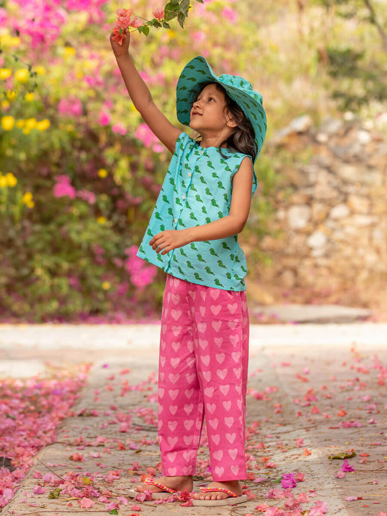 Set of 2 - Linda Organic Cotton Block Printed Top & Pants Set