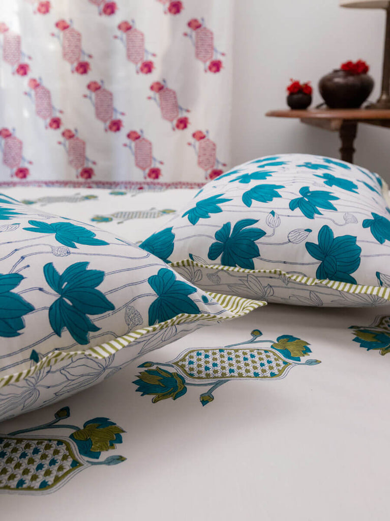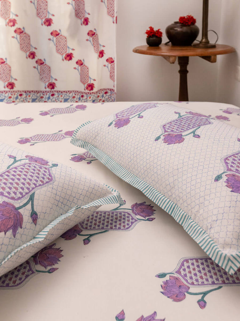 Set of 2 - Lotus Love Block Printed Vanity Case and Travel Pouch
