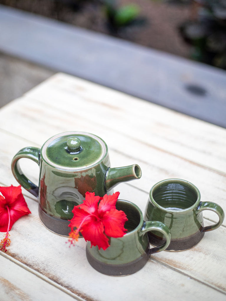 Emerald Hand-Thrown Dimpled Ceramic Tea Pot Set