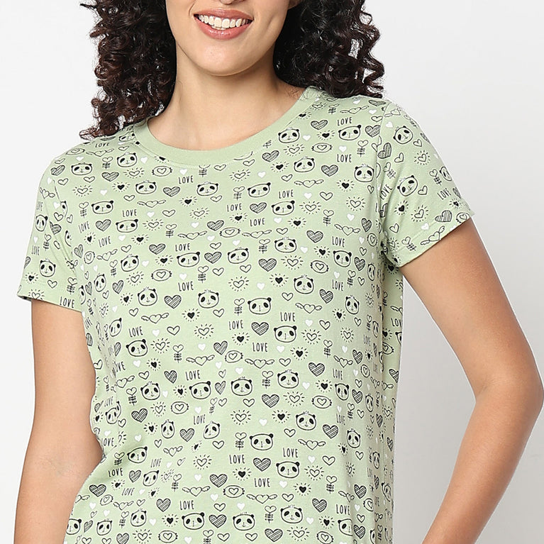 Animal Print Crew Neck Loungewear T-Shirt