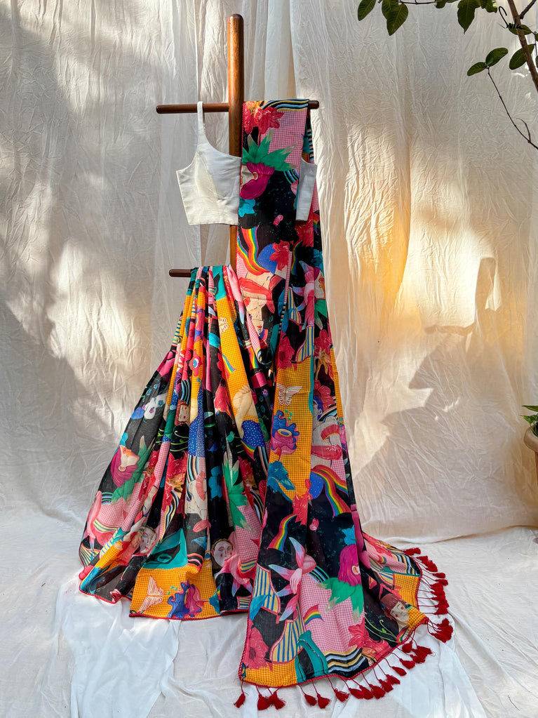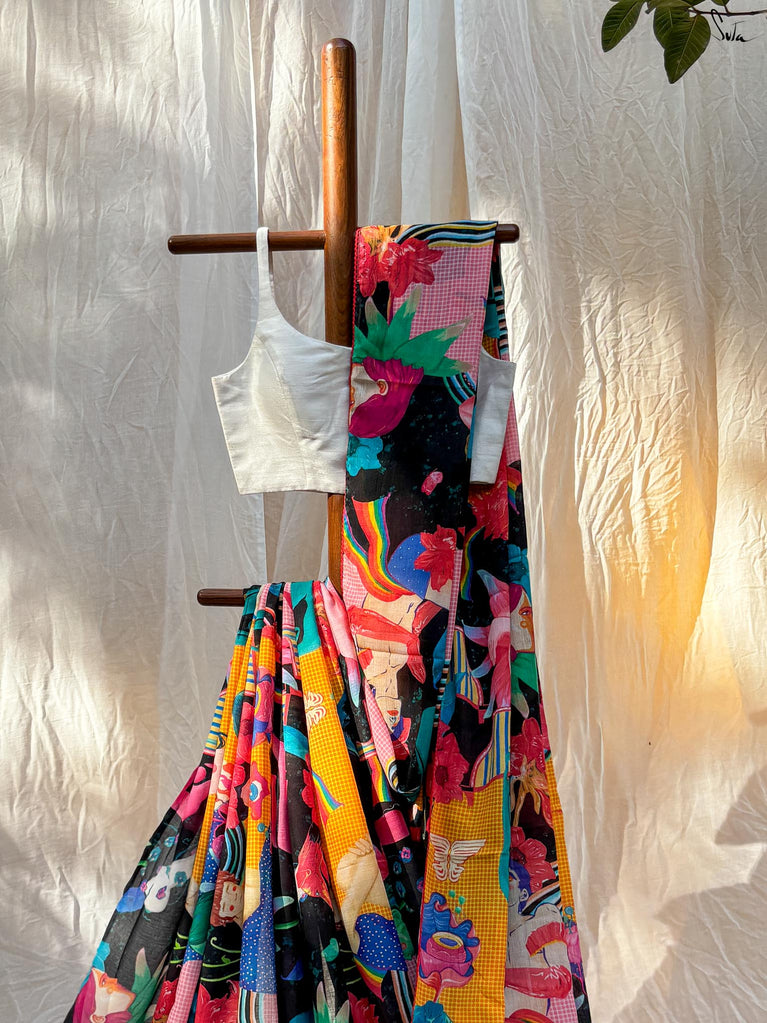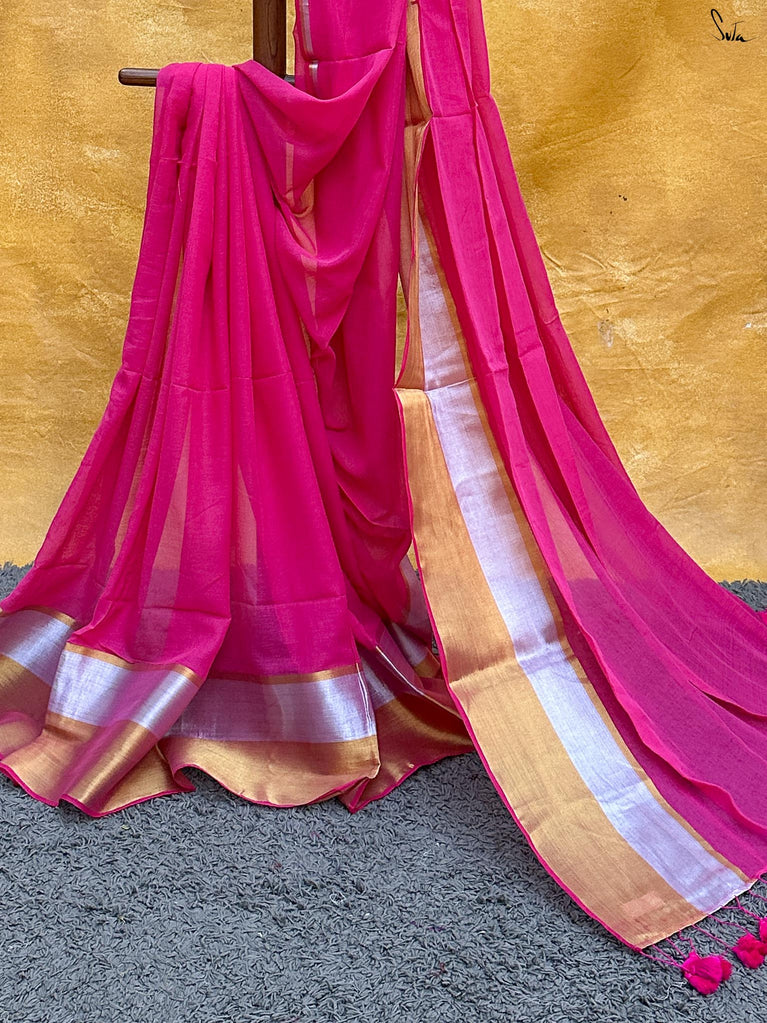 The mul cotton is what we call ˜made in heaven at Suta. Known in West Bengal as mul mul, the fabric is buttery soft and delicately beautiful. The weave of this fabric is very fine, and this lends a very fluid texture to it that makes draping it a breeze. It is truly like a hug that wraps you in its love!