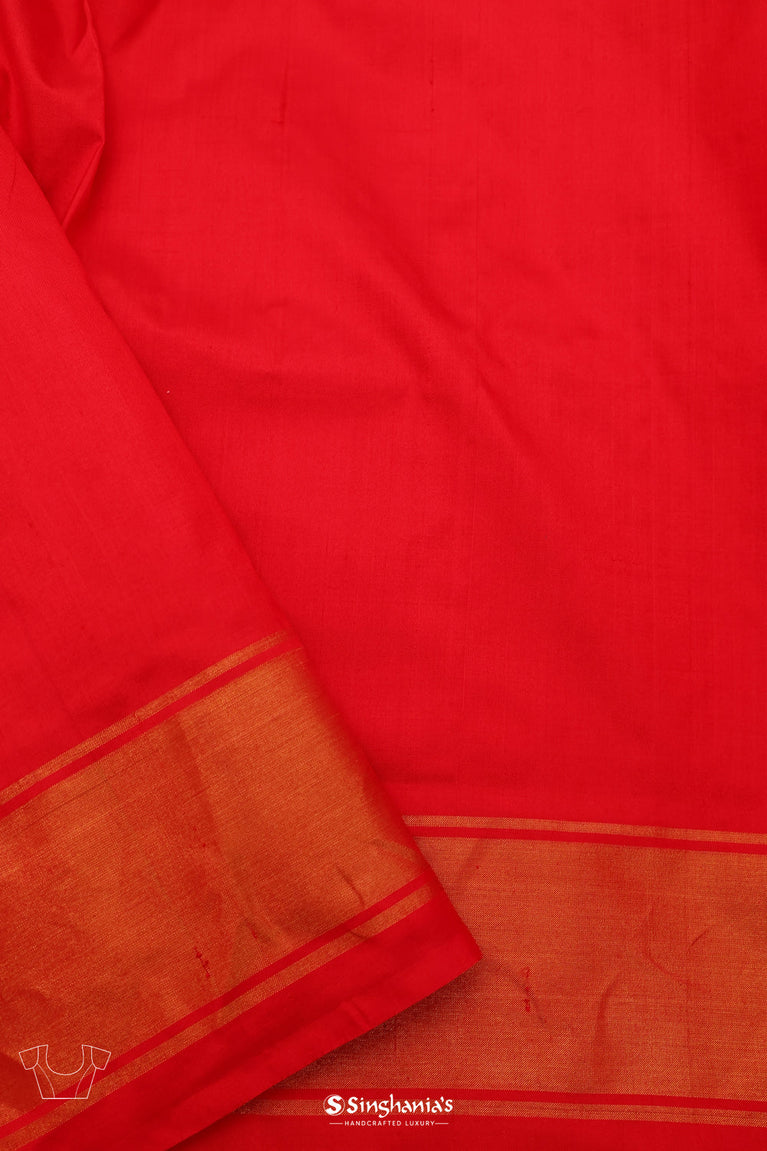 Deep Orange Kanjivaram Silk Saree With Contrast Border