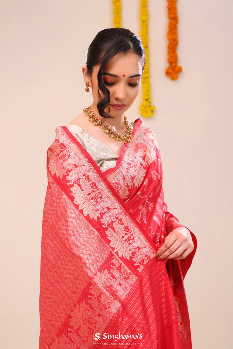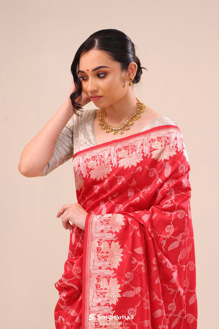 Deep Red Floral Jaal Kanjivaram Silk Saree