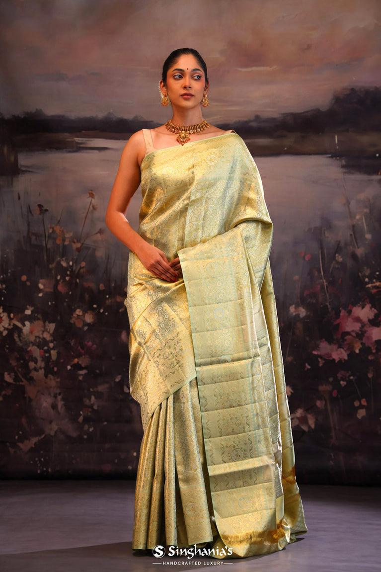 Diaquiri Green Floral Kanjivaram Silk Saree