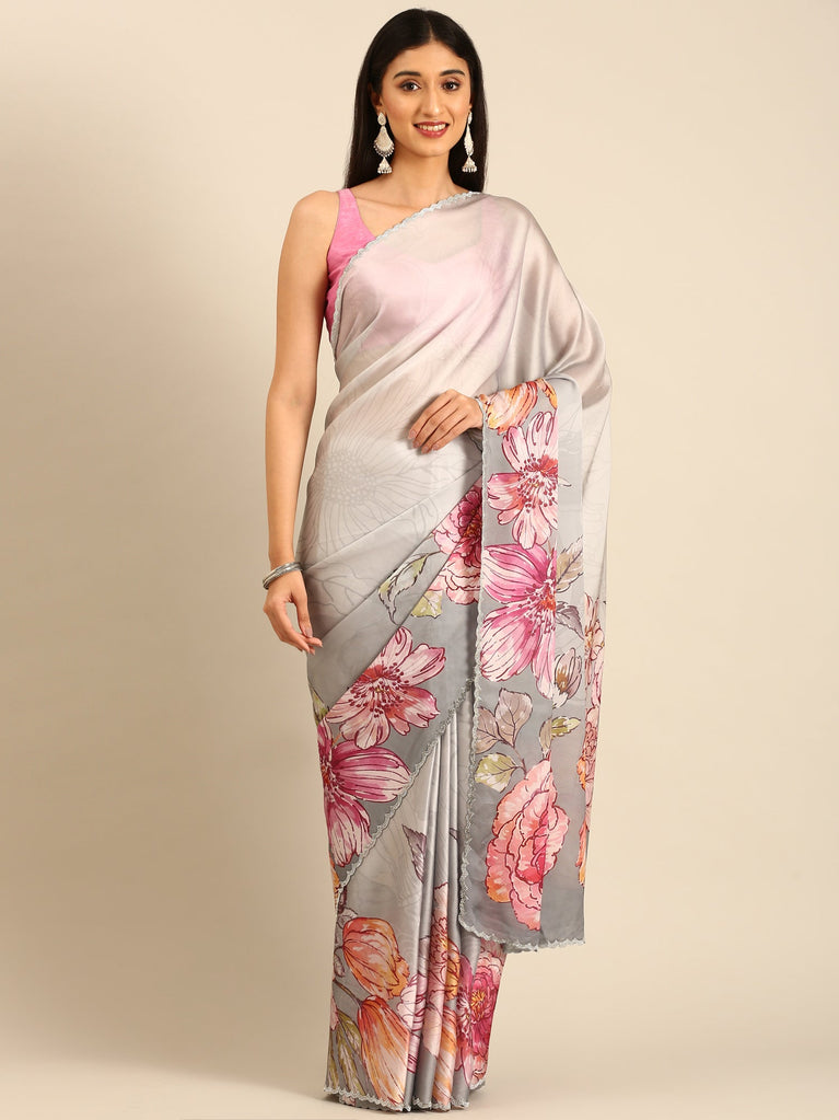 The saree is accompanied by a stylish, ready-made blouse designed to complete your look.