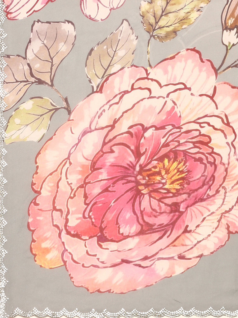 Elevate your wardrobe with this exquisite satin saree featuring a delicate floral print enhanced by intricate Swarovski embroidery. The smooth satin fabric offers a luxurious drape and subtle sheen, while the sparkling Swarovski accents add a refined elegance. Perfect for special occasions, this saree combines timeless design with expert craftsmanship to ensure you make a graceful statement.