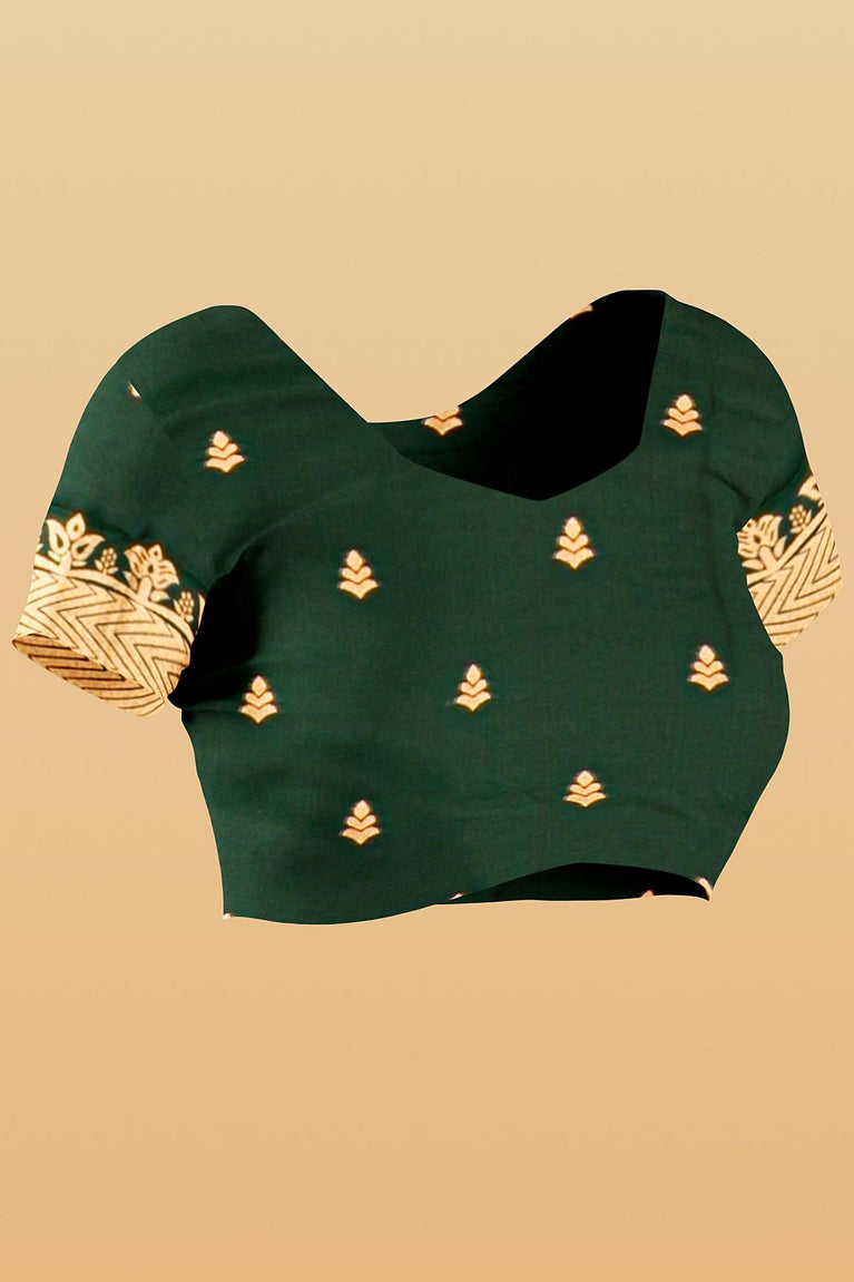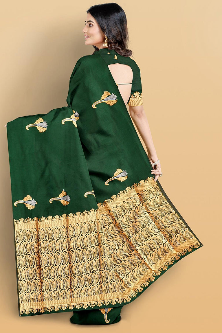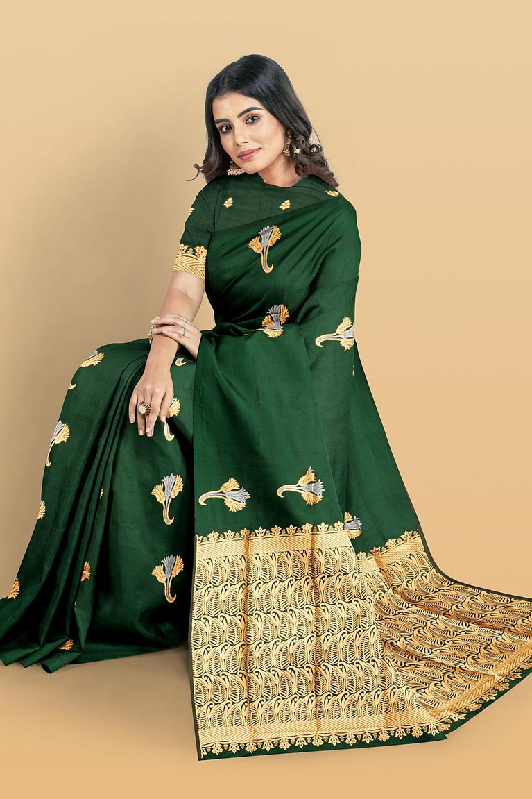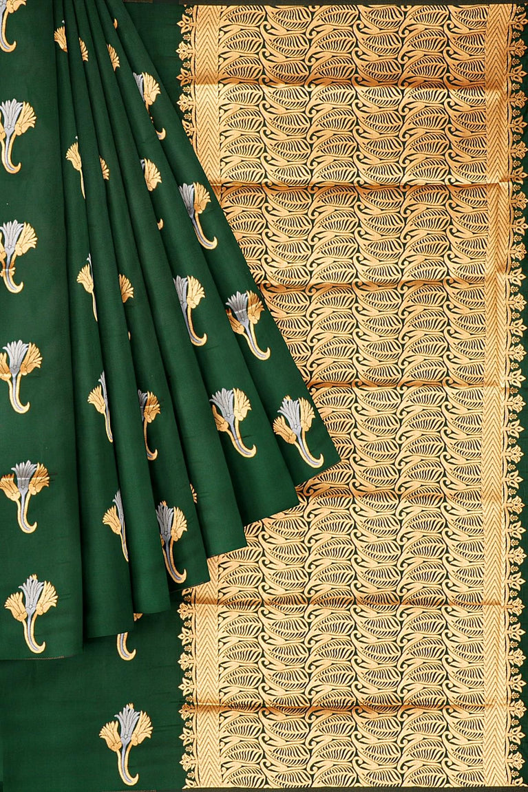 GREEN and GOLD BUTTIS SILK BLEND Saree with SEMI PATTU