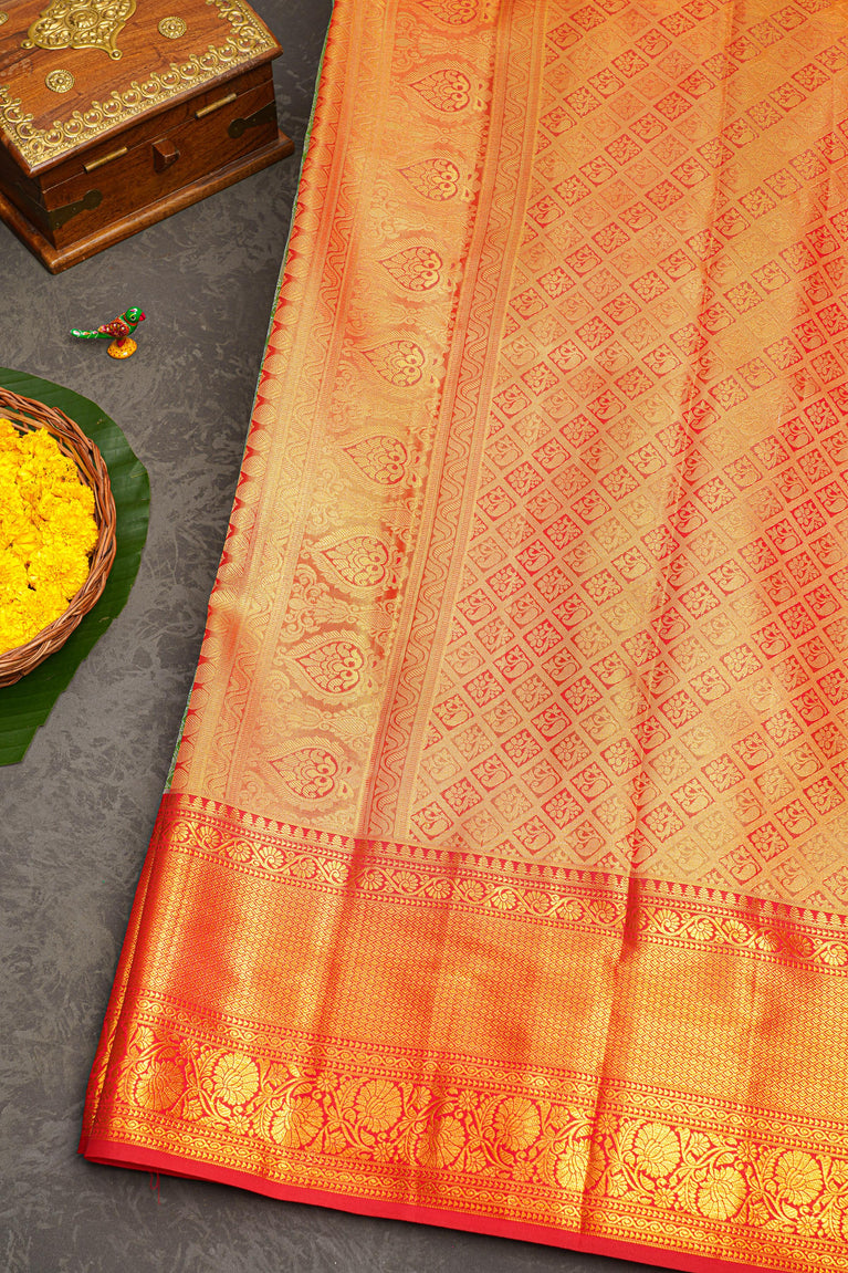 Green Gold Tissue Kanjivaram Saree With Floral Jaal Weaving