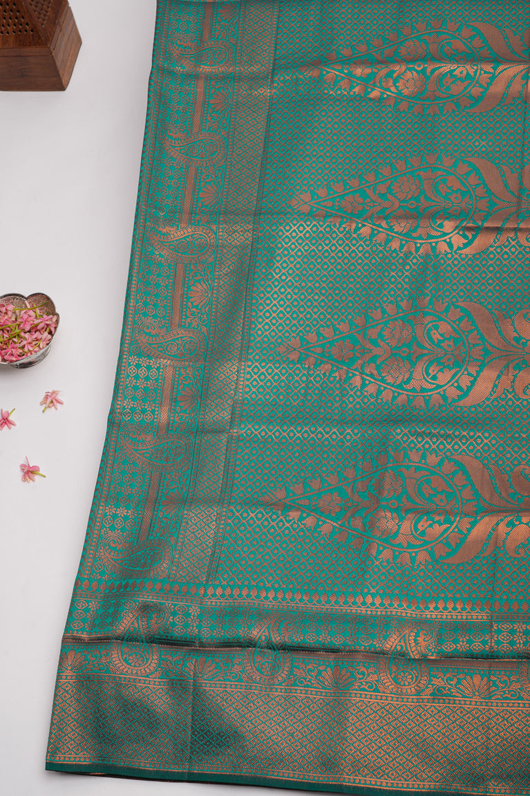 Kelly Green Kanjivaram Silk Saree With Floral Jaal Design