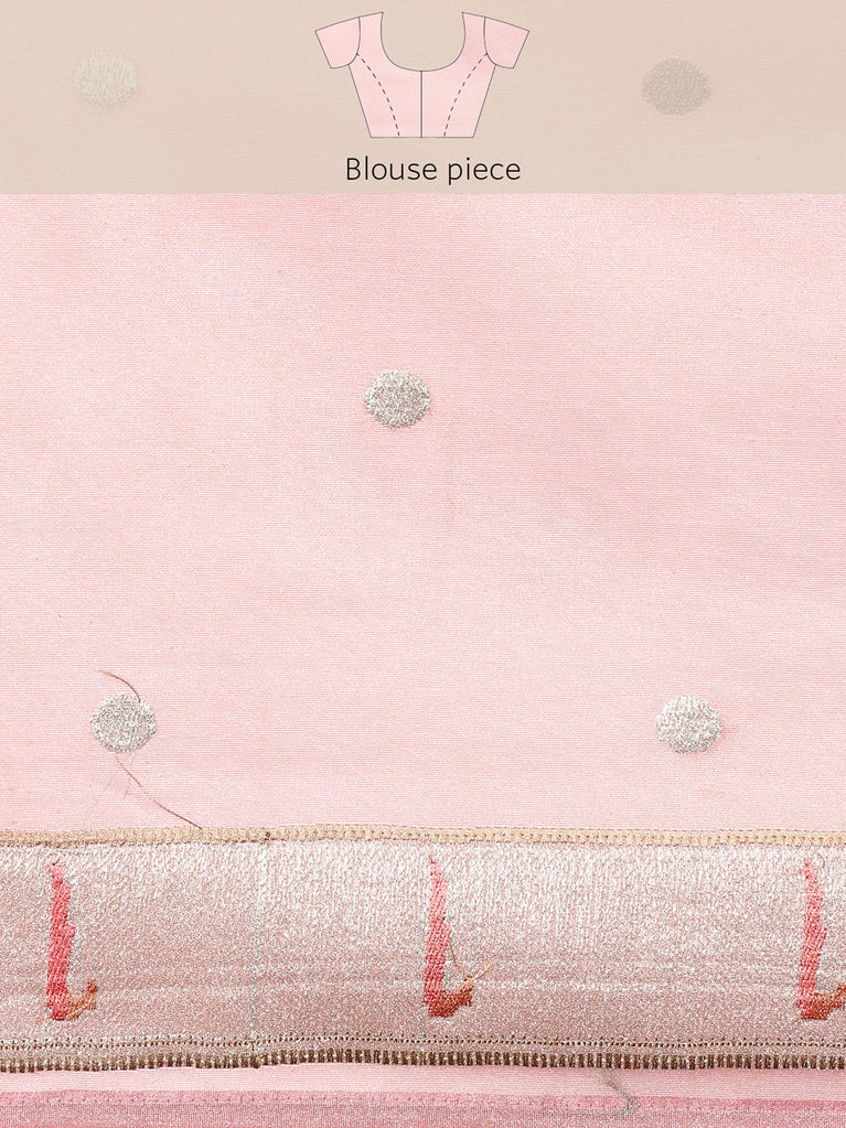 Baby Pink Banaras Silk Saree With Meena Border And Motifs