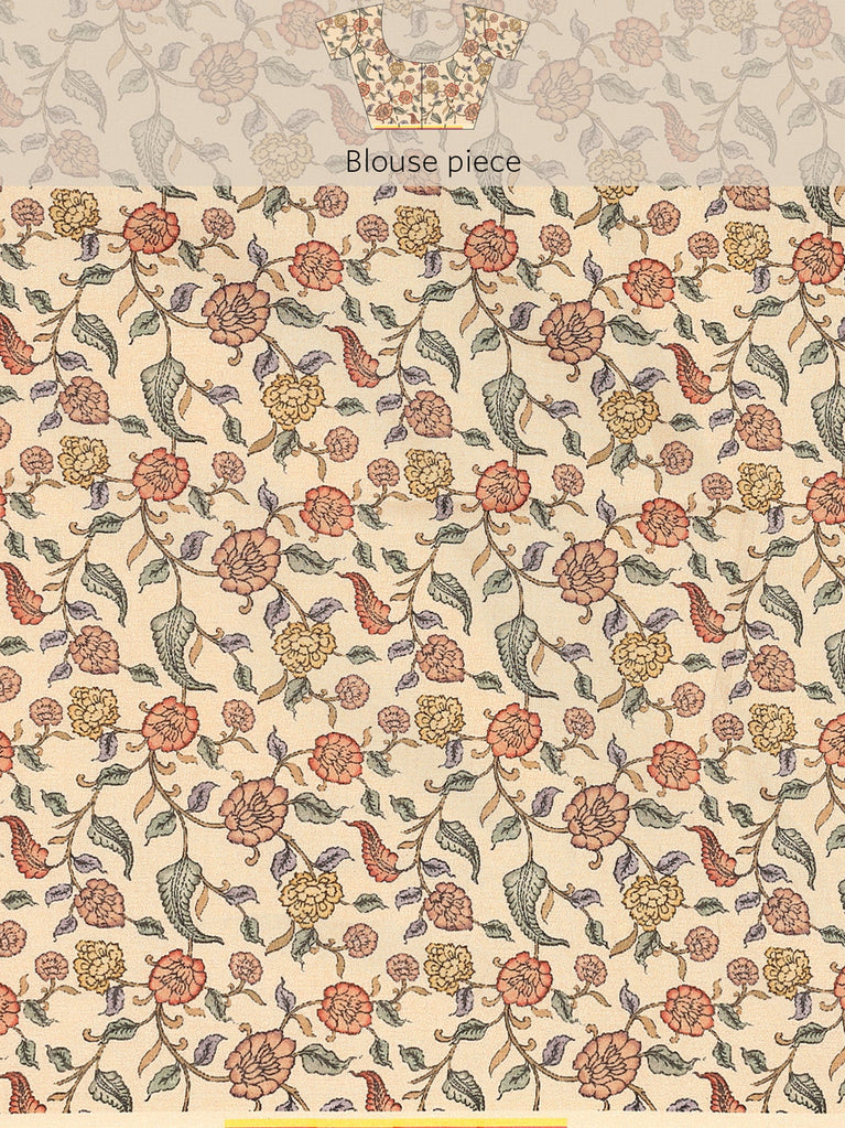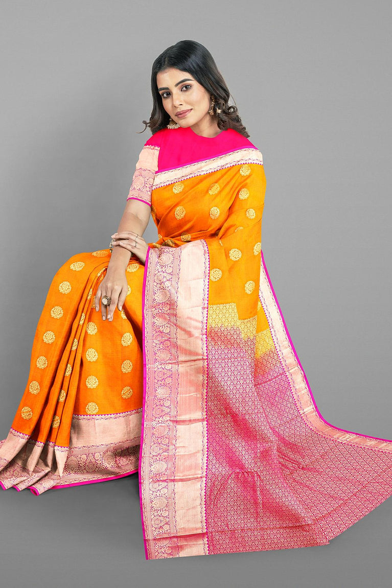 ORANGE and GOLD FLORAL JAAL SILK Saree with KANCHIPURAM