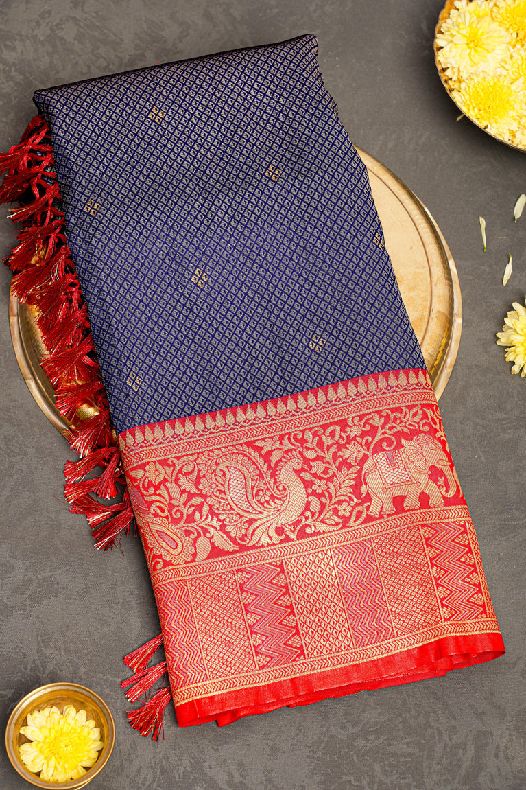 Navy Blue Mysore Crepe Saree With Zari Jaal Border