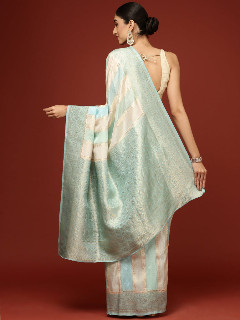 Elevate your traditional wardrobe with this exquisite Blue Banaras Weaved Saree. Crafted with intricate weaving, it showcases the timeless elegance and rich cultural heritage of Banarasi artistry. The deep blue hue complements both festive occasions and formal events, making it a versatile addition for a refined, graceful look.