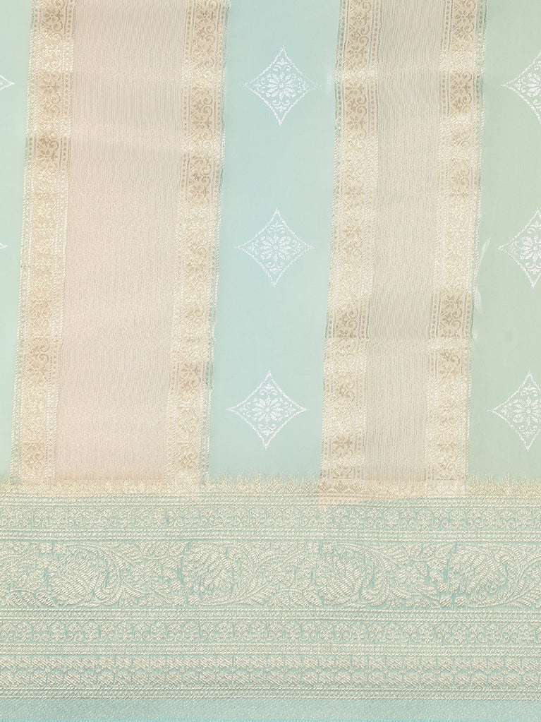 BLUE and SILVER SHIBORI PRINT GEORGETTE Saree with FANCY