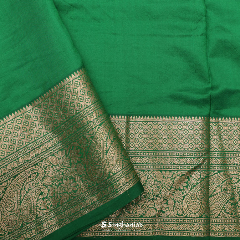 A luminous bright gold kanjivaram silk saree where the body features delicate floral jaal weaving in fine gold zari, complemented by a rich pallu displaying classical peacock and kaddi patterns. The broad border adds a fresh dimension to this timeless piece.
