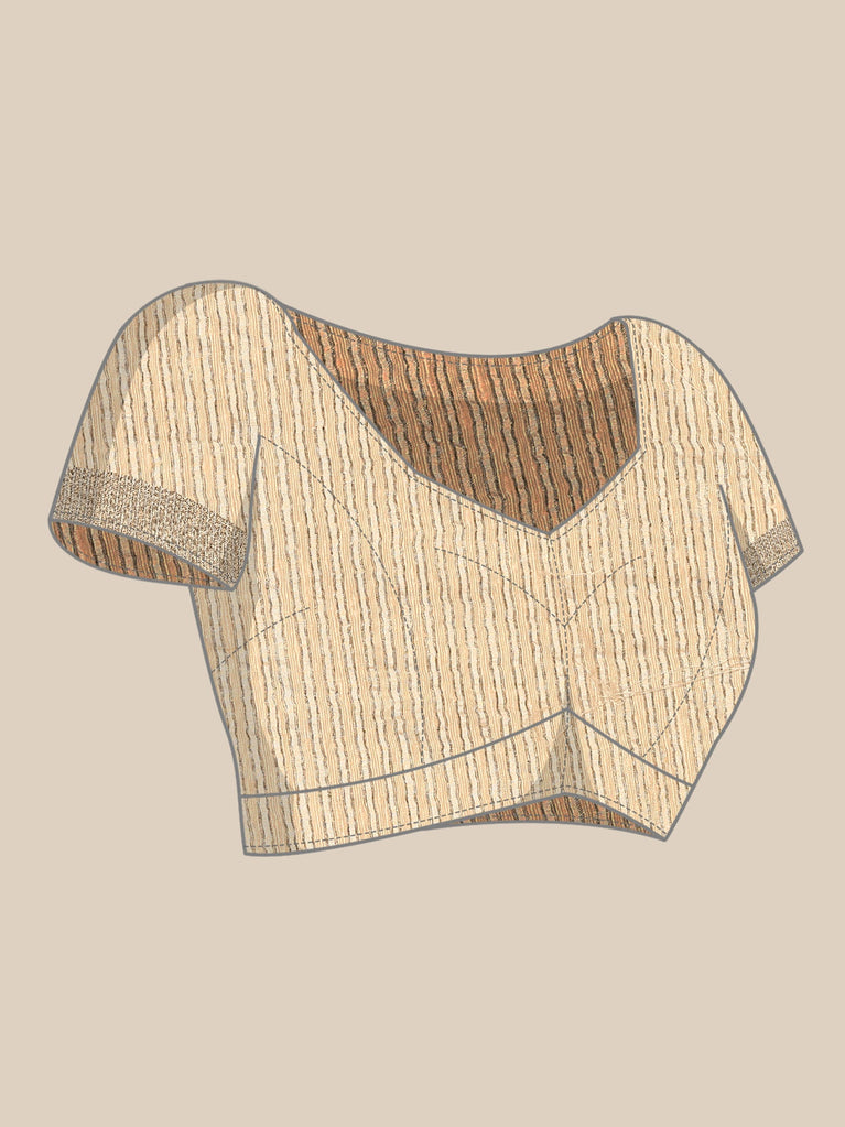 Cream Gold Handcrafted Tissue Banarasi Saree