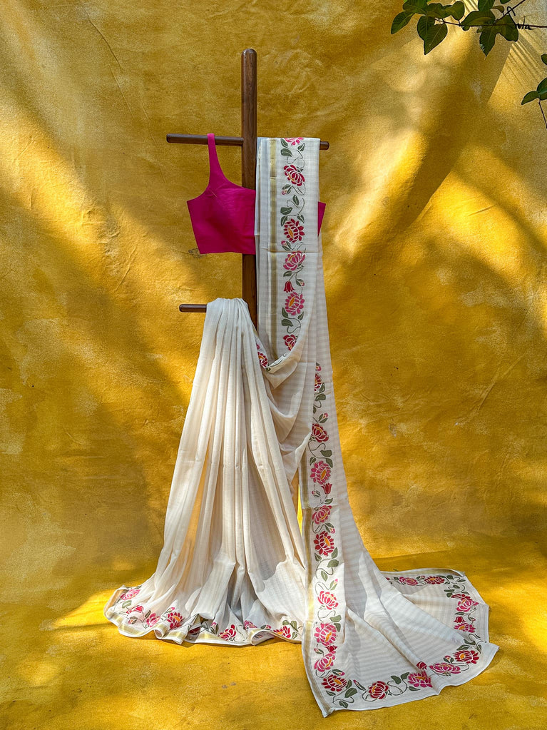 The mul cotton is what we call ˜made in heaven at Suta. Known in West Bengal as mul mul, the fabric is buttery soft and delicately beautiful. The weave of this fabric is very fine, and this lends a very fluid texture to it that makes draping it a breeze. It is truly like a hug that wraps you in its love!