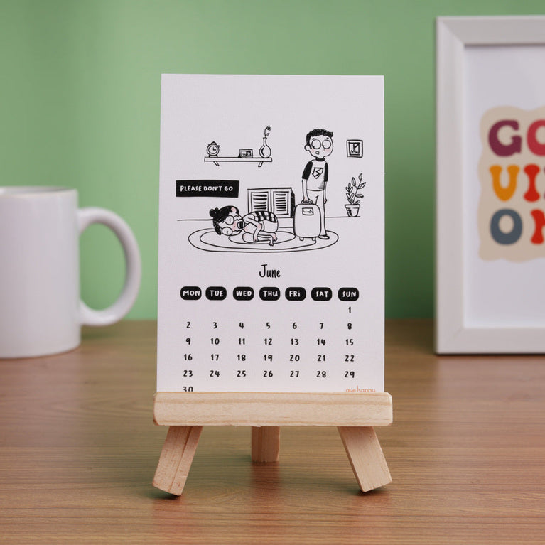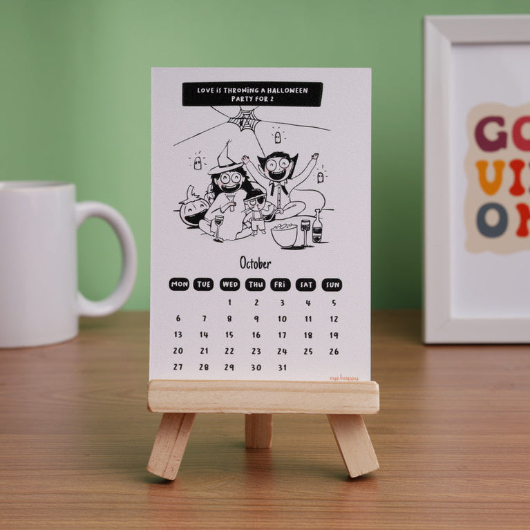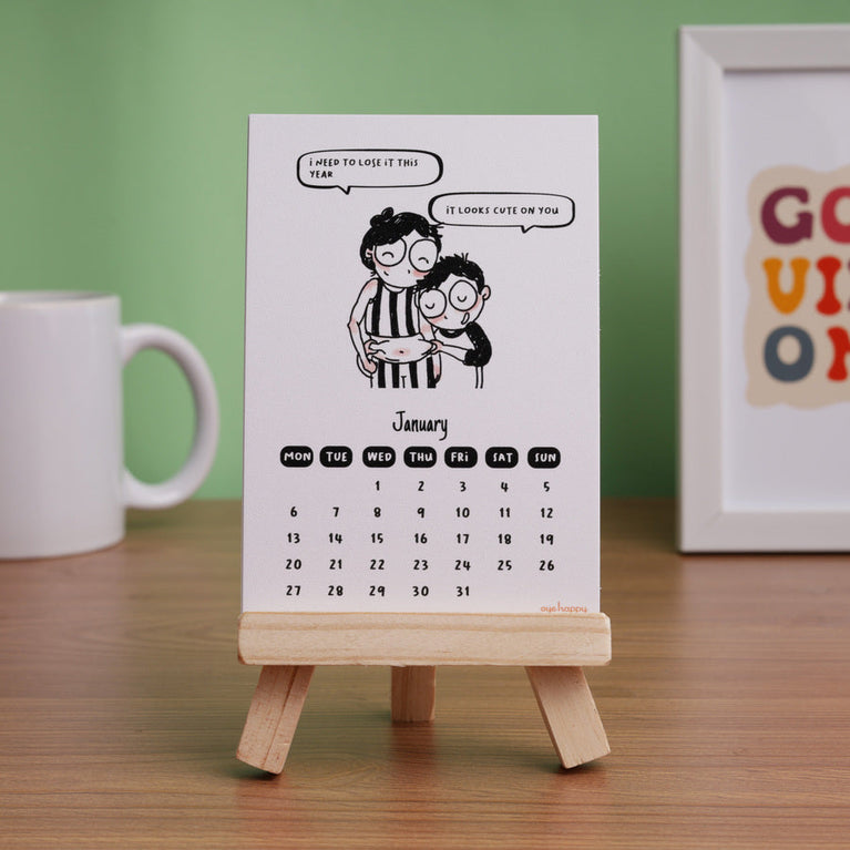 If you and your partner love celebrating the little things, this calendar fits right in. Each month shows a moment that looks exactly like something you two have done - or will do. Gift it to your partner to make them smile all year long. Or surprise the most adorable couple you know and make their new year special.Specifications-Size of the Easel : 4.5 x 3.5 inchesSize of Cards : Size : 3.4 x 5 inches