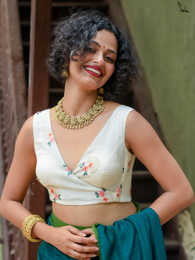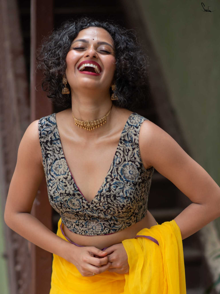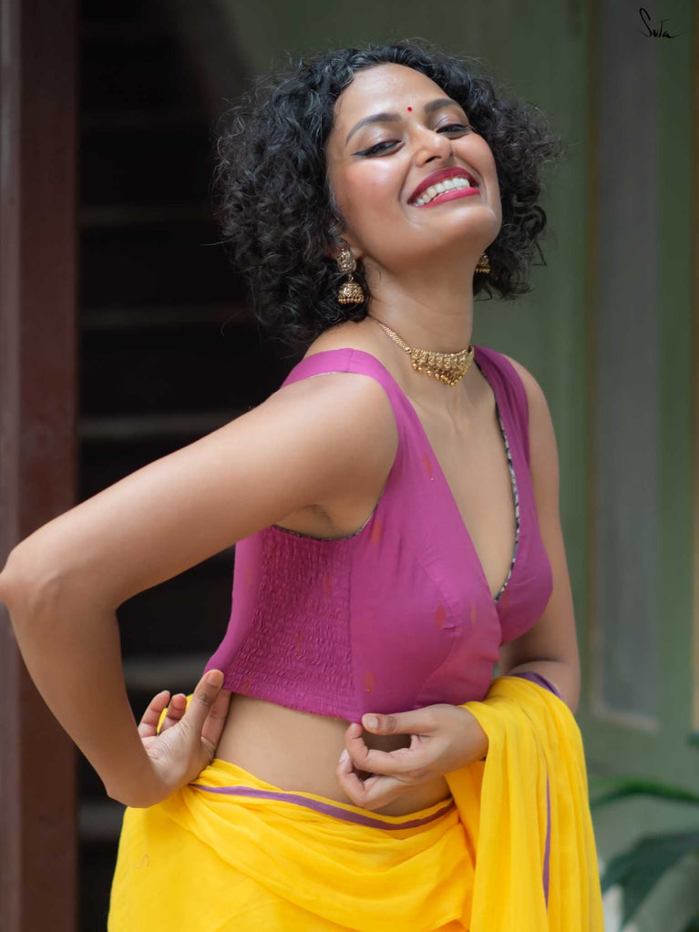 Blouse : Su, the model is wearing size S blouse and the saree is Playful Sitara