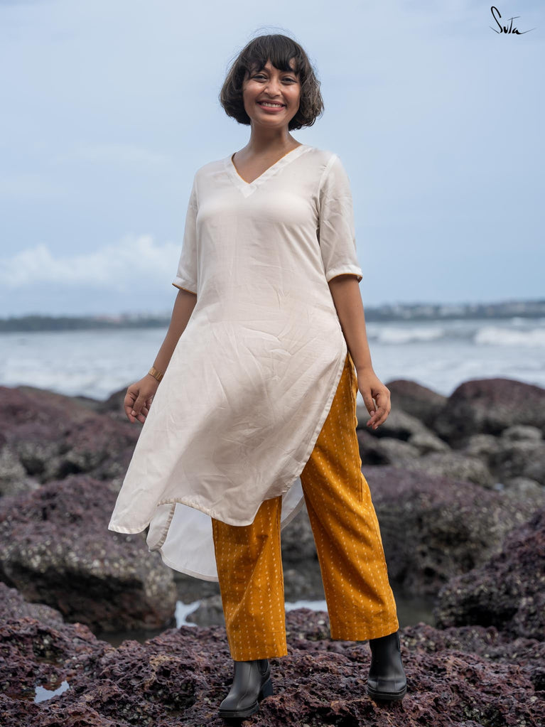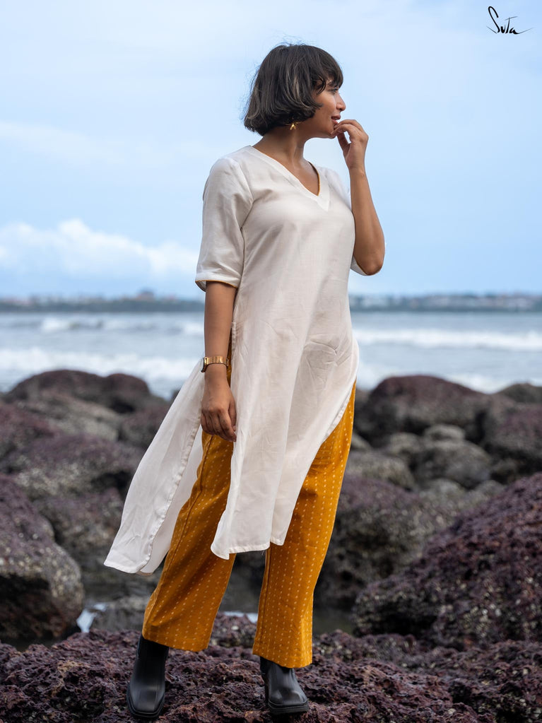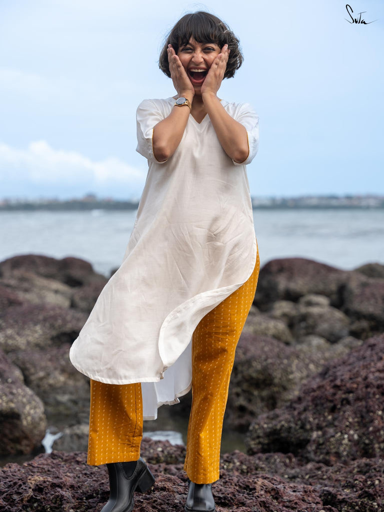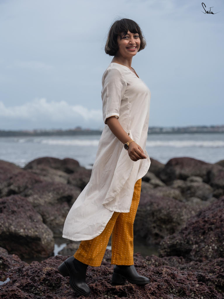 A jewel in the wild, the burr mallow flower grows freely and abundantly in the wild, sharing its beauty with all those who come across it. But its eye-pleasing looks aren’t the burr mallow’s only strength – it has so much more to give in the form of food, fibre and medicine, all of which make the burr mallow indispensable to those whose lives it touches. Like the flower, this stunning cotton blouse will earn itself a permanent place of value in your life.