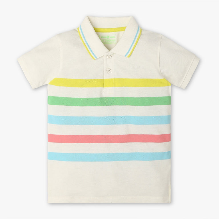 Boys Polo Neck Half Sleeve Yarn Dyed Sports Striped T-Shirt