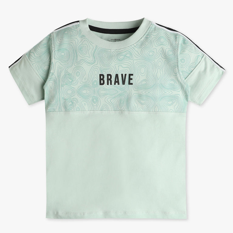 Boys Oversize Cut And Sew Crew Neck Brave Print T-Shirt
