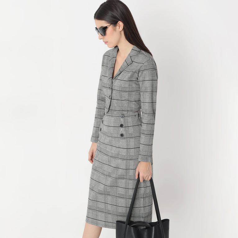 Checkered Lapel Collar Full Sleeve Crop T-Shirt