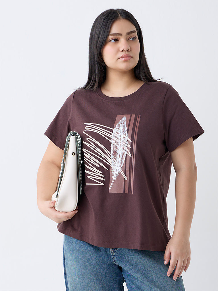 Gia Brown Printed Cotton T-Shirt