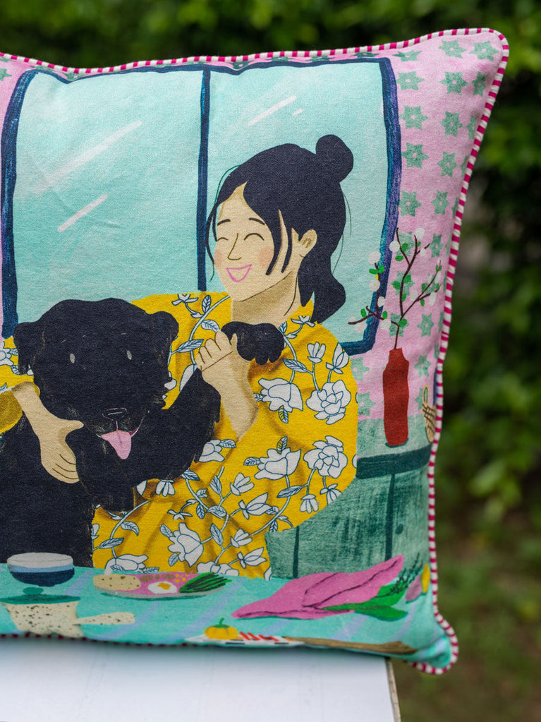Heavenly Ride Block Printed Cotton Cushion Cover - 12 Inch